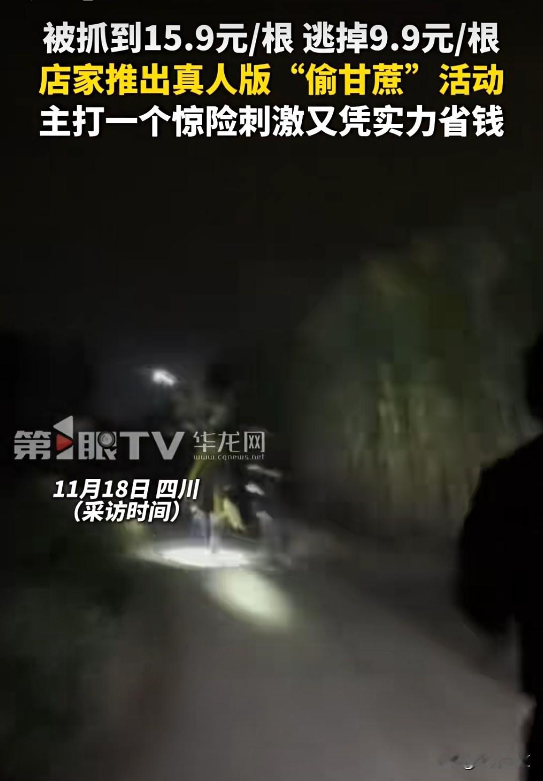 这个世界终于还是颠成了我们想要的样子! 前有“假装上班公司”业务火爆,现在又有商家推出“偷甘蔗”活动。据华龙网报道,11月18日,四川某店家推出真人版“偷甘蔗”活动,被抓到15.9元/根,逃掉9.9元/根,吸引了大批想要找回童年乐趣的中年人参与,主打一个惊险刺激又凭实力省钱。 这样一个能提供情绪价值的活动你愿意花钱体验吗?情绪价值 童年乐趣