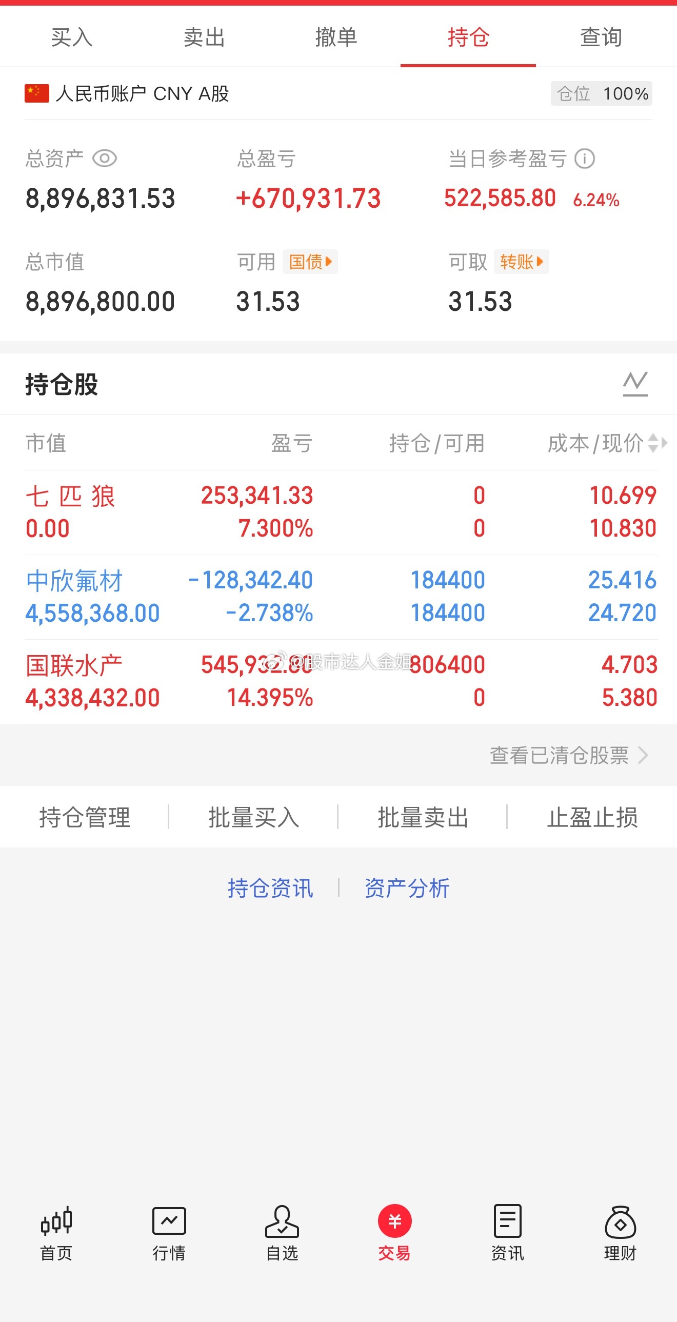 金姐“实盘记录”(第33天)(一个月翻倍)今日介入:国联水产今日卖出: 七匹狼目前持有:中欣氟材(中线逻辑)金姐会记录每一天的交易计划!实盘是检验实力的最佳标准,只要稳扎稳打,定能势如破竹、节节高升!希望各位兄弟姐妹多多支持,动动发财小手点赞👍,点赞积极,一路涨不停!📈📈📈特别声明:这是本人的日常交易计划,不构成投资建议,请勿盲目跟风,股市有风险,入市需谨慎!