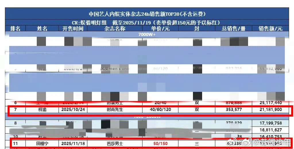 梓渝和田栩宁24小时杂志战报:梓渝《时尚先生》登总榜第七,双封配置(120💰)田栩宁《芭莎男士》总榜第11,三封配置(150💰)同剧大爆的两个人成绩都不错
