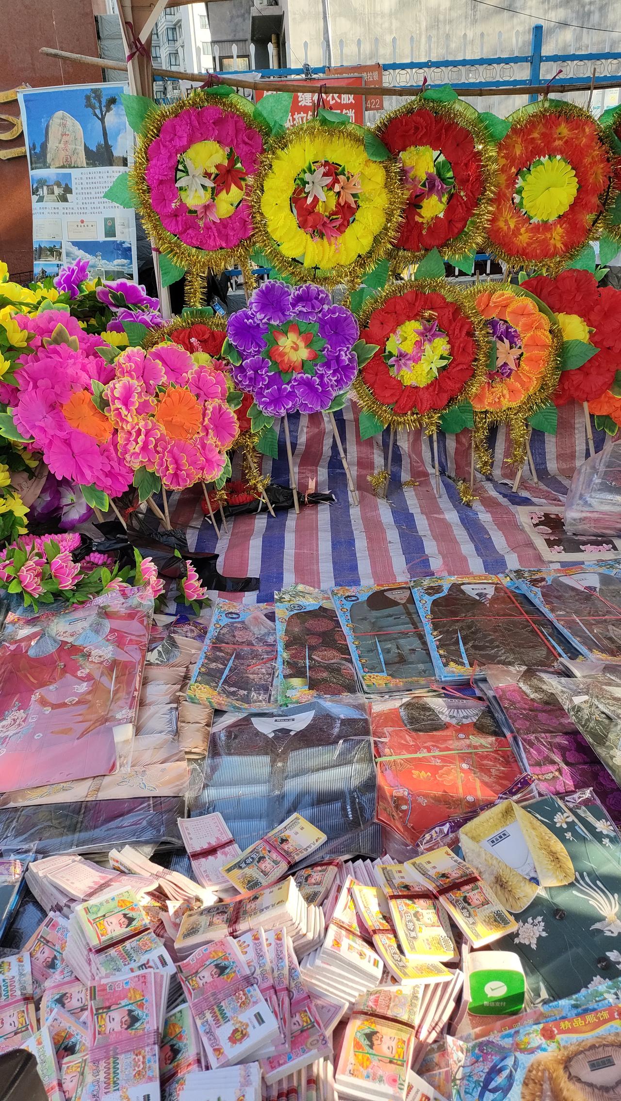 明天初一,今天中午开始,街道十字路口烧纸的人已经开始转财了,韩城市这一点很人性,给不方便回家人提供了追思的方便。但今年感觉合阳的风俗已传到韩城,鲜艳的小花圈以前在合阳见过,今年韩城已经有了,专门请教摊主大姐,这花圈不是烧的,插在坟头,她说昨天卖了二十多个,韩城人已经开始接受了。 传统的韩城十一,在家门口烧棉衣和纸钱,并用馄饨祭奠。现在不太讲究,有人为了方便,有人为了补课,棉衣棉被纸钱金砖等,只要摊上卖的,一股脑买来烧到坟头或者十字路口,让另一个世界的人不要受苦,而且也是为自己未来储备。 节日祭祀的目的,是教育人们不要忘记祖先,不要忘记自己从哪里来,具体形式其实并不那么重要,只要心意到即可。