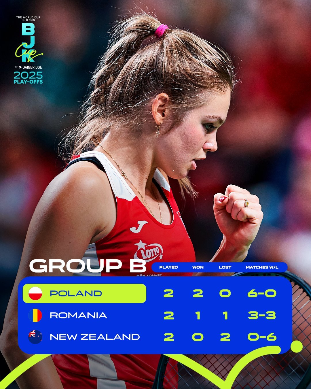 附加赛 B组波兰 3:0 新西兰斯瓦泰克 6-0 6-1 爱丽丝·谢卡瓦 6-4