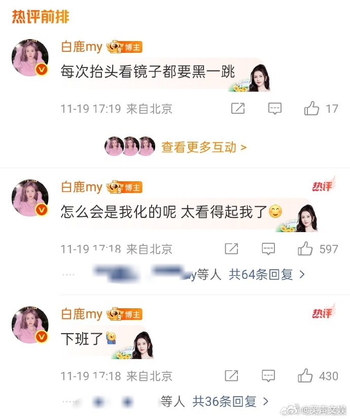白鹿染成黑发后眉眼更突出,她想念粉发却选择不染,不同阶段的美都值得珍藏。
