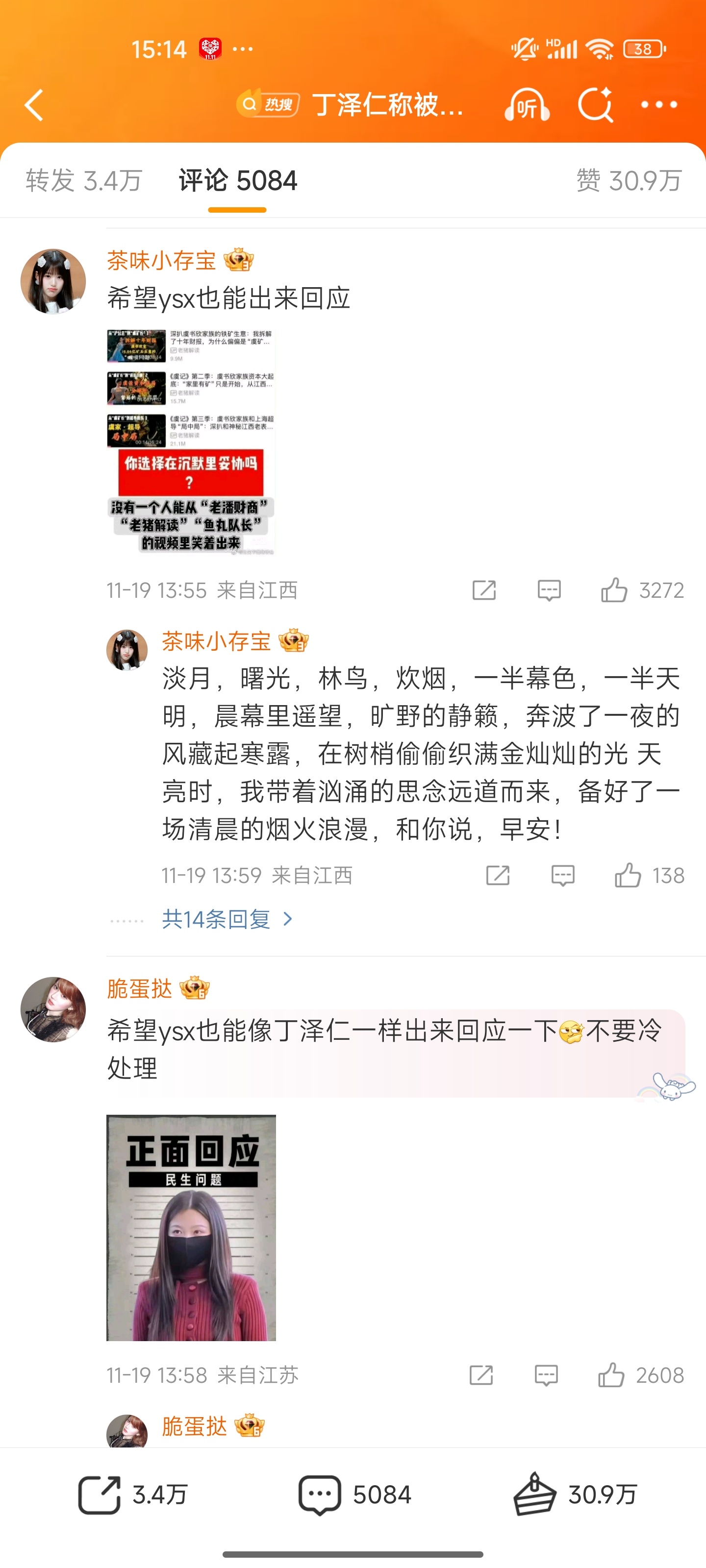 丁泽仁叽里咕噜发这么长的文,评论区没有一个人在意他在说什么,反而是喊话虞书欣和赵露思也像他学习。你们觉得应该是赵露思学习?还是虞书欣学习?