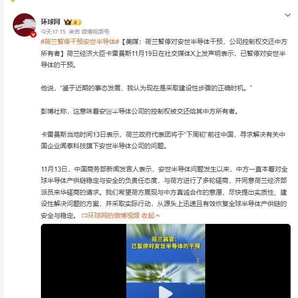 目前也只是暂停而已,起码荷兰得取消法令并且道歉、赔偿损失并承诺保障在当地投资的中资企业权益才算妥善解决。看看下周初[吃瓜群众]。