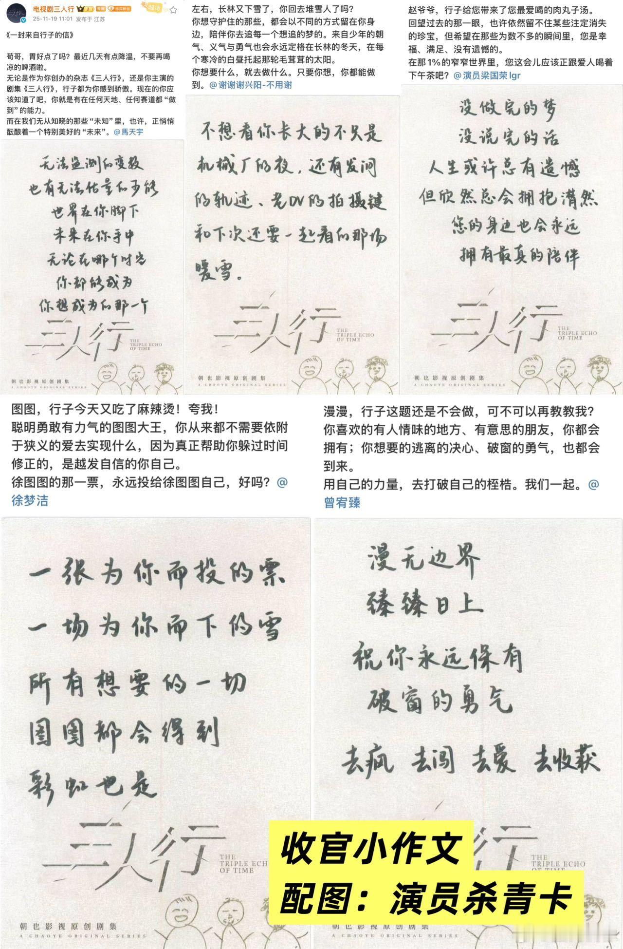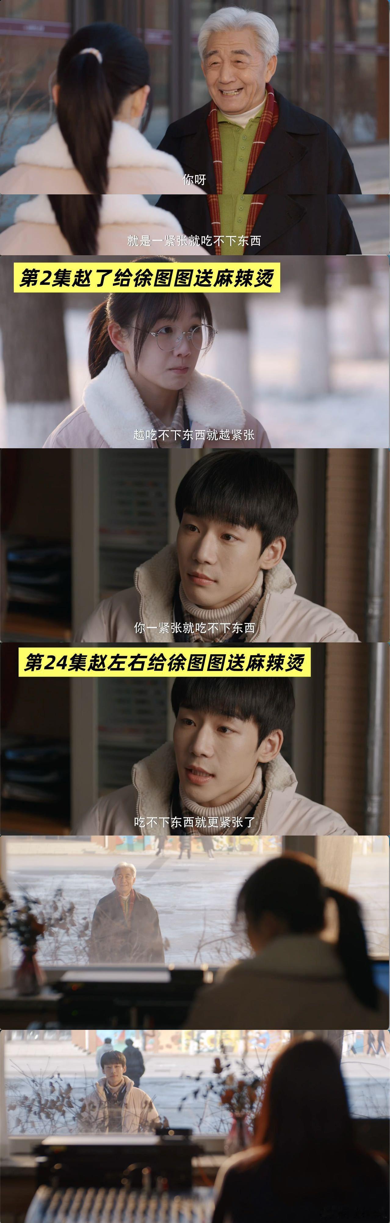 三人行你是懂call back的!!谁还不知道三人行今天大结局!穿越题材却能做到铺垫伏笔全收束,真给人看爽了。剧里无数个小细节前后呼应:第24集赵左右给徐图图送麻辣烫说的话跟第2集里赵了说的话是一样的,窗外看徐图图的拍摄角度也一模一样;王一漫第1集借给荀未来的钢笔终于在24集被赵左右还了回来;大结局中年赵左右给中年徐图图的结婚纪念日礼物是第2集没有给徐图图投的那一票;赵左右的疤兜兜转转还是因为徐图图的爸爸回来了,觉得系鞋带浪费时间的陈明也开始穿有鞋带的鞋了…戏外谁不说一句官微顶级前后呼应!先是连发24张单集海报呼应开播的24小时倒计时,后是收官小作文诚意满满地写了对每个角色说的话,还配图附带杀青时给演员们写的小卡片😭谁看了不说一句三人行戏里戏外都是顶级call back!这是真的玩转时间了!