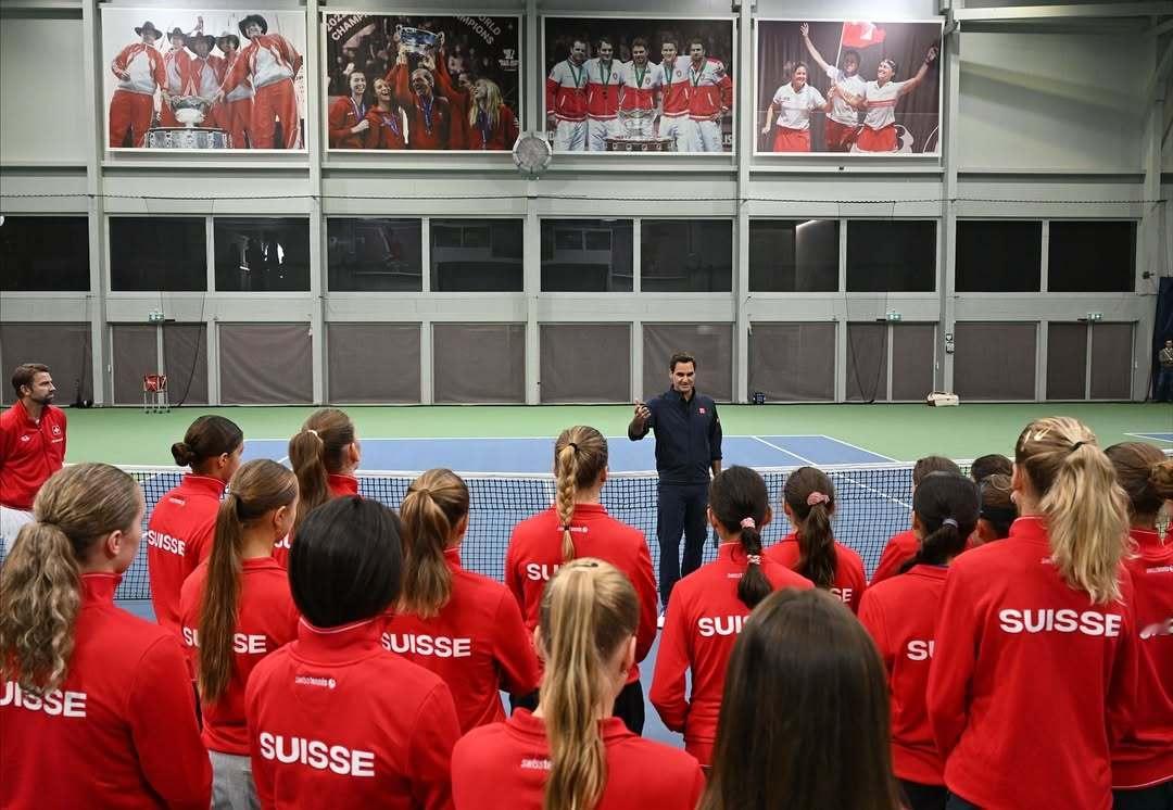 费德勒来到瑞士网球总部,接受由克里斯特尔斯以及众多网坛传奇一一起的视频连线,确认费德勒将入选网球名人堂。真的是最不breaking 的news 。费德勒还给瑞士网球的年轻小朋友们上了一堂网球课,最后还有以前巴塞尔夺冠后和球童的经典“披萨派对”重现!📷:Roger IG