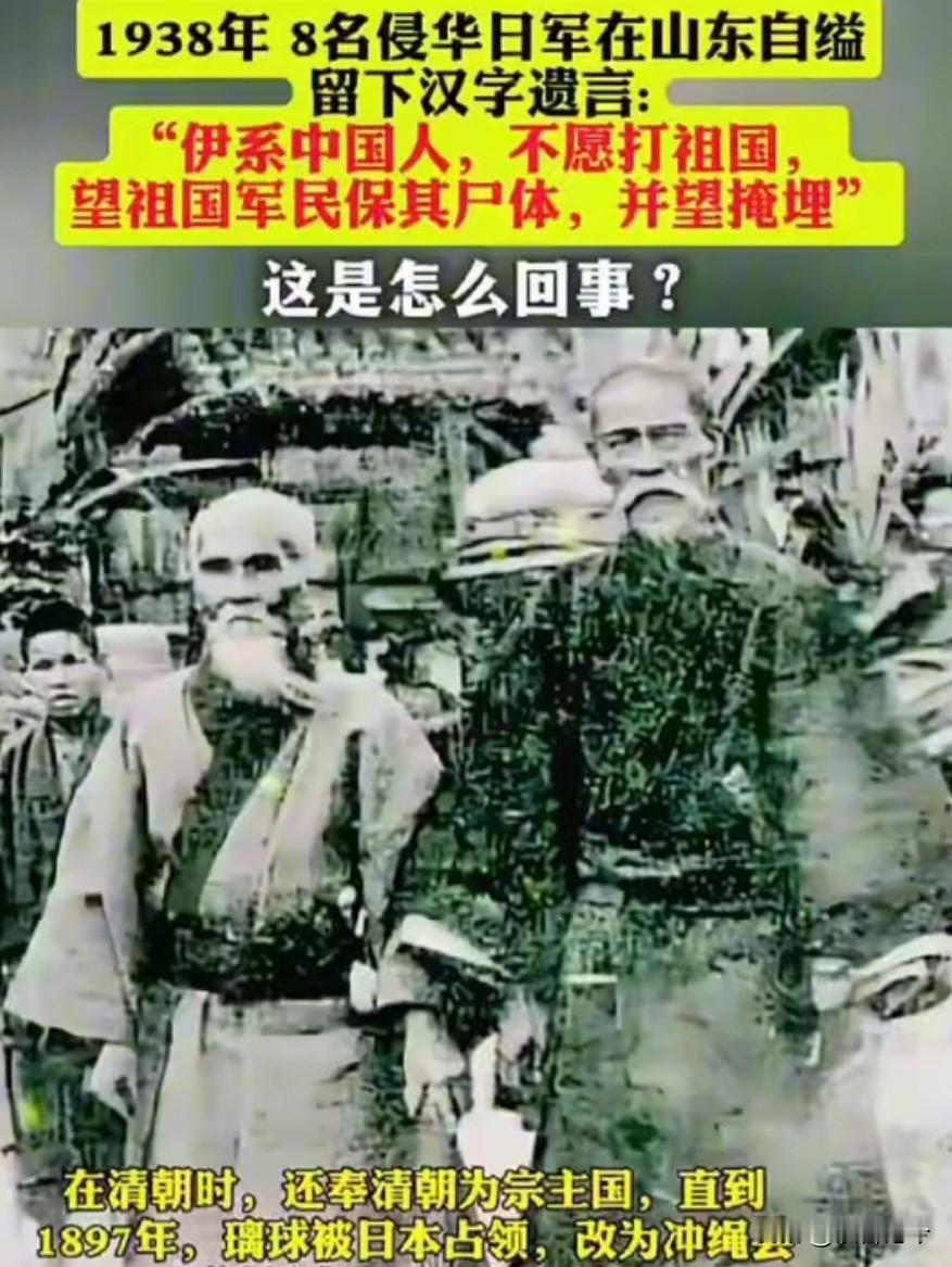 宁可自缢,不打祖国的“琉球人” 临沂保卫战,庞炳勋的第四十军于1938年3月20日在临沂傅家赤草坡发现上吊自缢的八名“日本兵”。在其身旁还留有遗书,上面写着:“伊是中国人,不愿打祖国,望祖国军民保其尸体,并择地掩埋。” 后经过打听,这八名上吊的日本兵均是琉球人,以死明志,中国人,不敢忘。这一幕被完整记录于《临沂文史资料》里,甚至《福建公教周刊》当时也有刊载,双重史料印证绝无虚构。 可能有人没深究过,琉球跟中国的羁绊可不是嘴上说说。从明洪武五年(1372年)建立封贡关系开始,近五百年里历代琉球王都要等中国皇帝册封才算名正言顺,官方文书全用汉字,连贵族爵位都带着中国文化印记。 清代同治三年的琉球人墓碑至今留存,碑首直接刻着“琉球国”,墓主人还是负责与中国交流的“通事”官员,这可是实打实的宗藩关系实物证据。1879年日本硬把琉球改成冲绳县,但殖民统治根本捂不住琉球人的中国认同。 二战时日本缺兵缺得疯狂,琉球人成了重点强征对象,14岁以上的男性都难逃魔爪。安波茶村原本208人,战争结束后死了130多人,26户直接绝户,这就是强征带来的惨剧。 这八名琉球人大概率就是这样被绑上战场的,他们穿日军军装、拿武器,心里却清楚要打的是文化同源、情感认同里的祖国。日军军纪有多狠?拒绝作战当场就会被处决,可对着同胞开枪,他们宁死也做不到。 遗书上“伊是中国人”五个字,不是一时冲动的口号,是他们对五百年宗藩历史的坚守,是对日本殖民压迫的反抗。自缢不是懦弱,是走投无路下最刚烈的选择——既不违逆良知,也不向侵略者妥协。 日本在琉球搞了几十年同化教育,却连八个人的中国心都没磨灭,这恰恰说明文化认同不是靠武力能篡改的。他们的死,是日本军国主义把异族当炮灰的铁证,也是琉球与中国深厚渊源的鲜活见证。 在临沂保卫战的炮火中,在日军后来制造的三千平民遇害的惨案阴影下,这八名琉球人的选择更显珍贵。他们用生命告诉世人,有些认同刻在骨子里,任谁也夺不走。 各位读者你们怎么看?欢迎在评论区讨论。