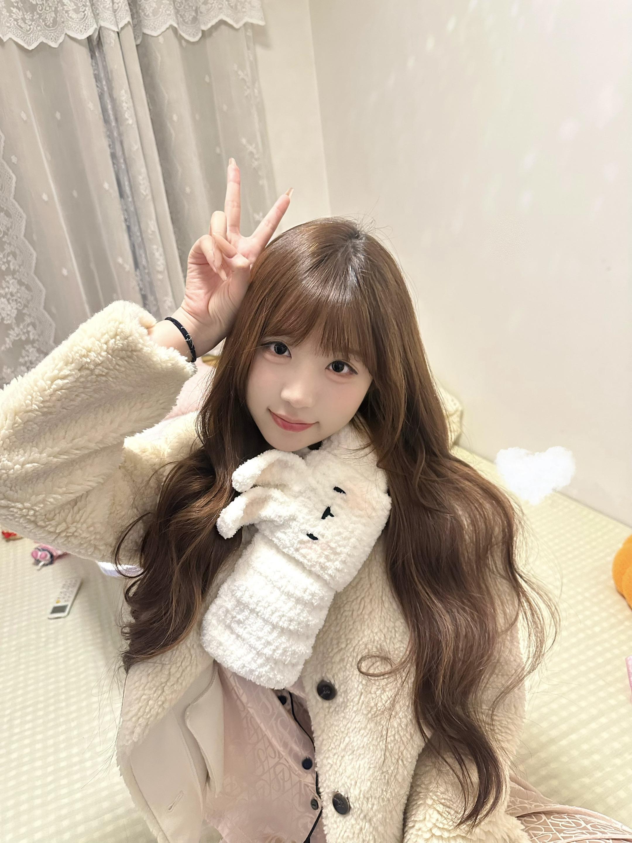 妈妈给我织的小兔子围巾好可爱 我好幸福!