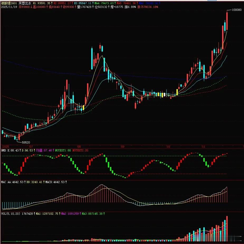突破10万大关,第三浪爆发了?A股今日继续低迷,银行股、三桶油全部出动护盘。受中日关系影响,水产品与军工股也异动,中水渔业出现4连板;锂矿股也比较强势,金圆股份3连板。这里面,只有锂矿股属于新能源主线阵营,其余的热点都是杂毛。锂矿股的崛起,得益于碳酸锂期货大涨,盘中一度突破10万元/吨大关。多晶硅的第三浪夭折了,碳酸锂却爆发了第三浪。赣锋锂业董事长李良彬在周末时预测,2026年碳酸锂需求会增长30%,价格可能会突破15万元/吨甚至20万元/吨。相比于目前的10万元/吨,这个预测看似空间很大,有50%-100%的涨幅空间,但其实很卑微。大家要知道,在2023年1月份时,碳酸锂几乎涨到了60万元/吨,明年即使涨到20万元/吨,其实也还在山脚,与2016-2018年的高点重叠。它未来还能重回60万元/吨的巅峰吗?不可能了,它只要继续上涨,就会有资金投产扩产。好在锂矿的建设周期有点长,快的话也要2-3年,这就给了当下的碳酸锂继续上涨提供了时间差。盘后重要消息:1、现货黄金重回4100美元上方!今日现货黄金涨1.14%,报4113美元/盎司;现货白银涨3%,报52美元/盎司。消息面上,特朗普表示想换新的美联储主席上台,引发了市场宽松猜想。此外,明晚9点半美国将发布9月份非农数据,该数据对12月降息与否影响比较大。2、主流有机硅厂商恢复报价,最新报价1.32万元/吨,较停盘前的1.13万元/吨大幅上涨。在有机硅实控人会议上,重点讨论了有机硅减产问题。这属于行业自律行为,具体的操作细节尚未确定,减产有望在12月初逐步落实。3、长盈精密:第四季度海外人形机器人新订单加速增长,公司正在积极扩产。公司表示,布局人形机器人业务时,最早对接的是海外品牌,所以目前出货比较多的也是海外品牌。4、阳光电源公告称,公司高级副总裁赵为,副总裁陈志强,副总裁彭超才,副总裁陆阳,副总裁田帅的减持计划已实施完成,合计减持32.97万股,占公司总股本的0.0161%。MD,倾巢出动呀!5、大为股份:湖南郴州锂电新能源产业项目正在推进办理探转采相关手续。难怪最近2连板,原来是有内幕呀,明天怕是要一字板了。