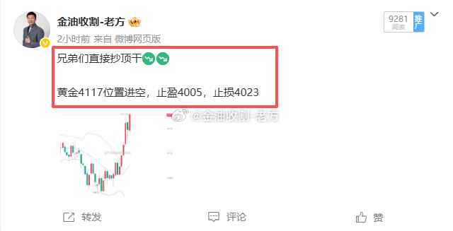 黄金布局4117空单,金价触顶回撤,呈现170点在这个市场,赚钱很难同时也简单。你不仅仅要经受行情的考验,更是需要拷问你的老师,没有人能保证每一单都对,可是该不该跟随你的老师却是一个大问题,作为一个分析师,我是真心的希望每个相信我的朋友都能投资成功,我希望你们能赚多少赚多少,而且无论是什么,你们赚了我才能赚不是吗。能够在此行业扎根二十年之久,皆因我热爱,我希望它能够日渐的完善,被更多的朋友接受并追捧,如果每个分析师都胡乱操作,那么这个市场迟早会死,对于热爱它的我来说,我是不愿意看见这样的结局。