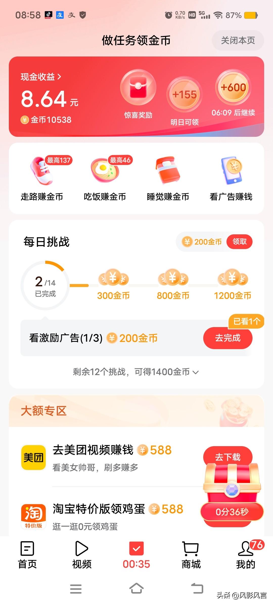 在抖音买了东西,再在头条刷金币,居然给了这么多[呲牙]