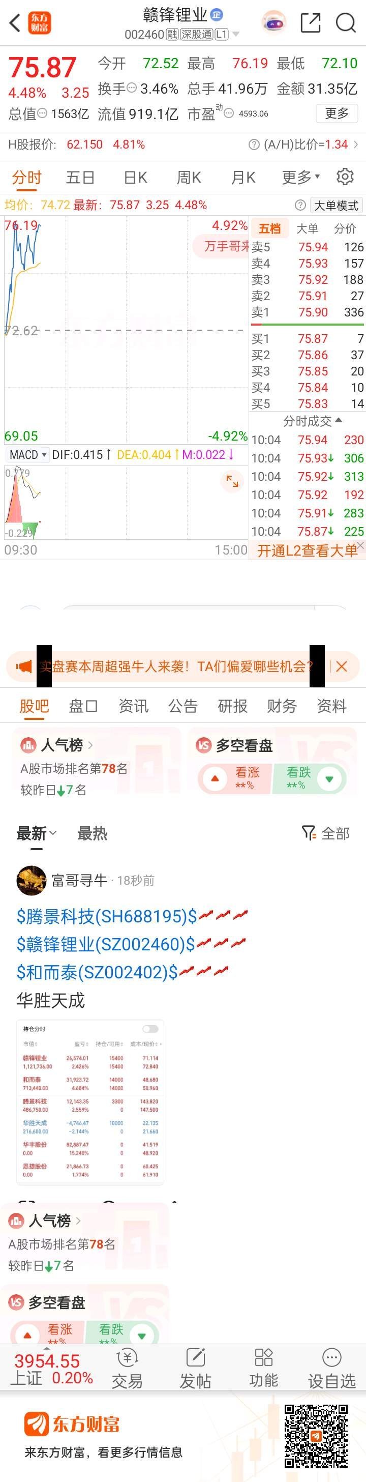 10:18大赣锋,继续冲——哈哈哈哈哈赣锋锂业(002460)东方财富