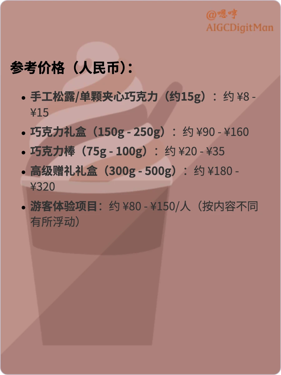 巧克力礼盒(150g - 250g):约 ¥90 - ¥160