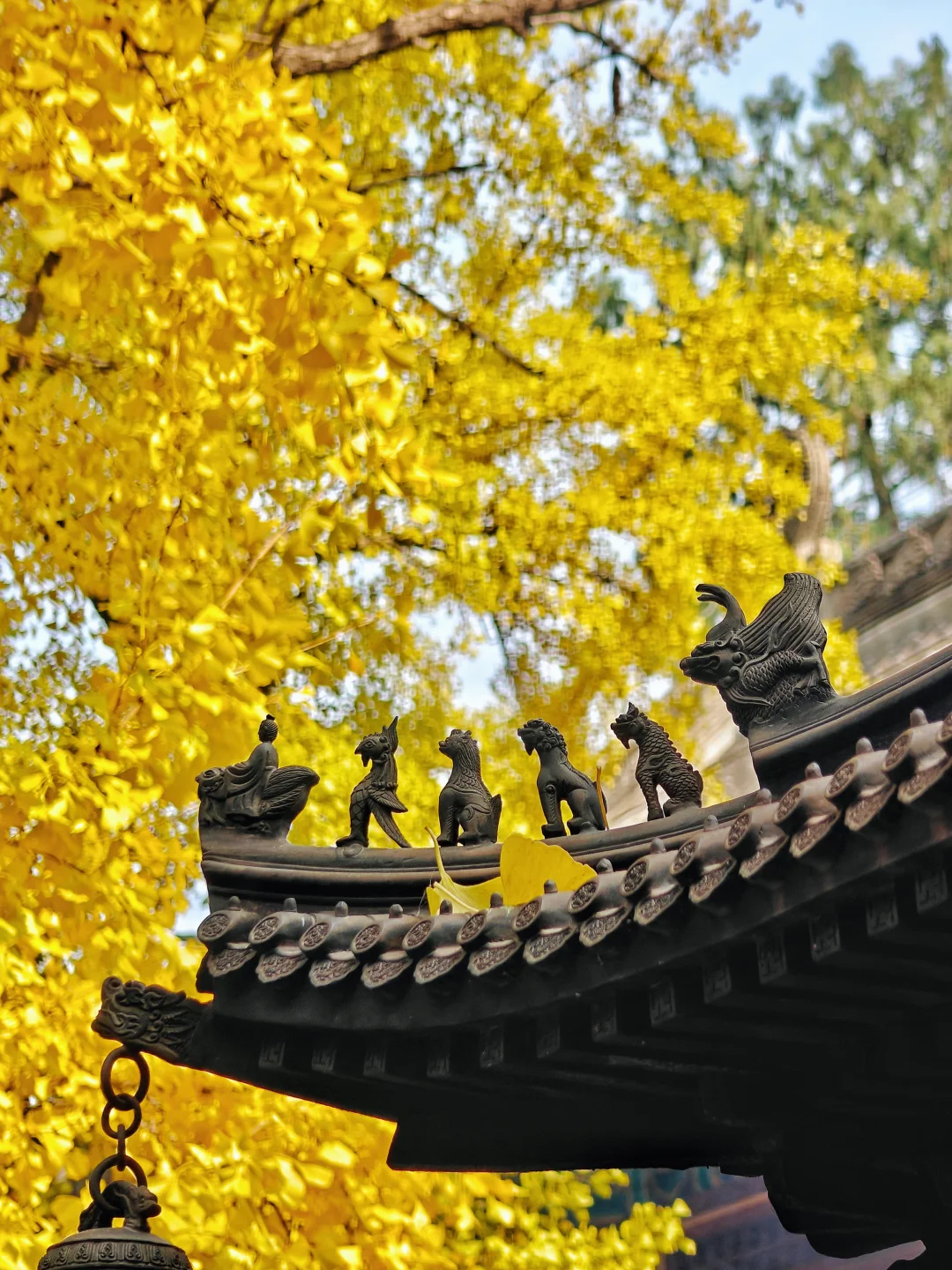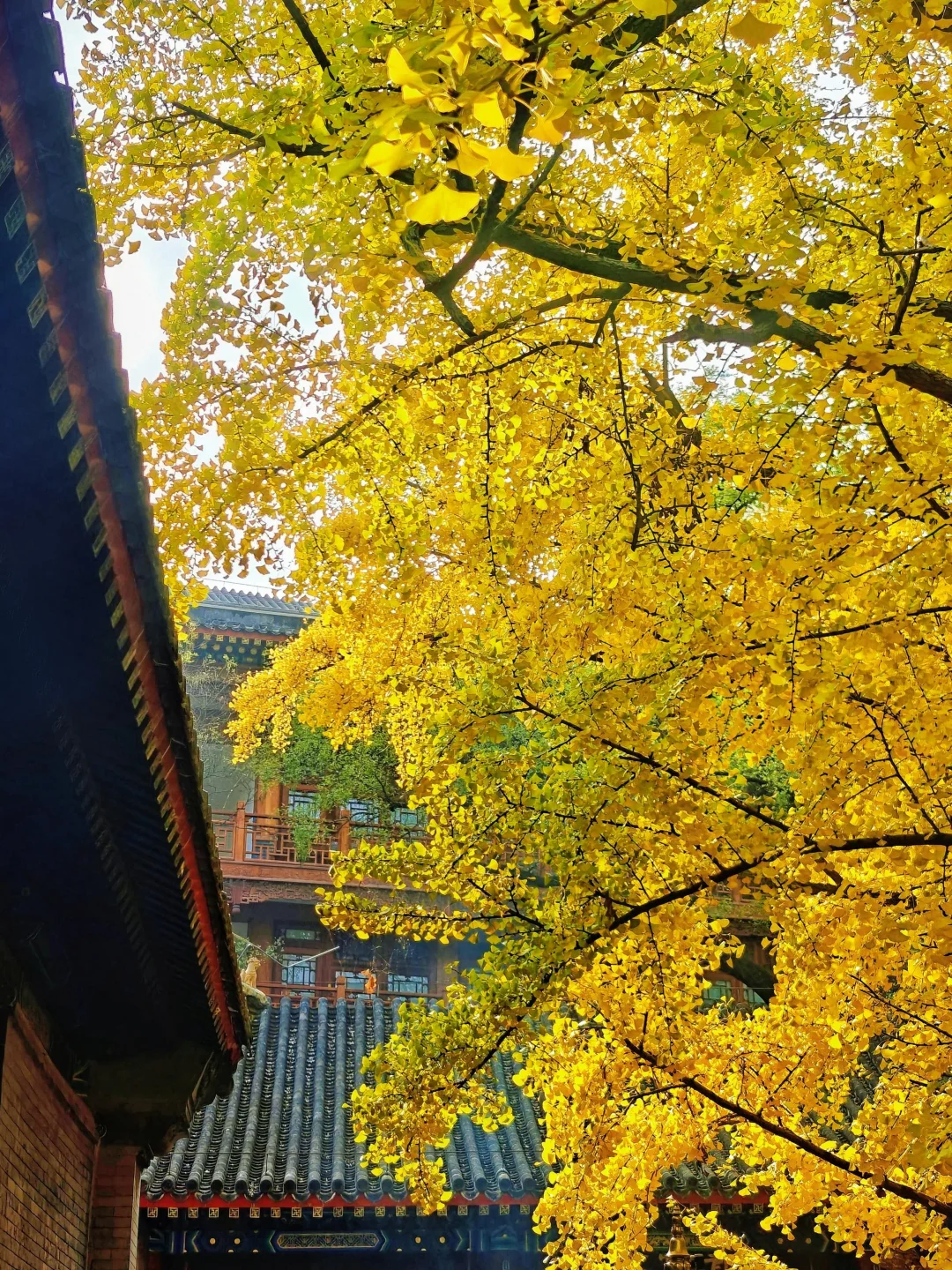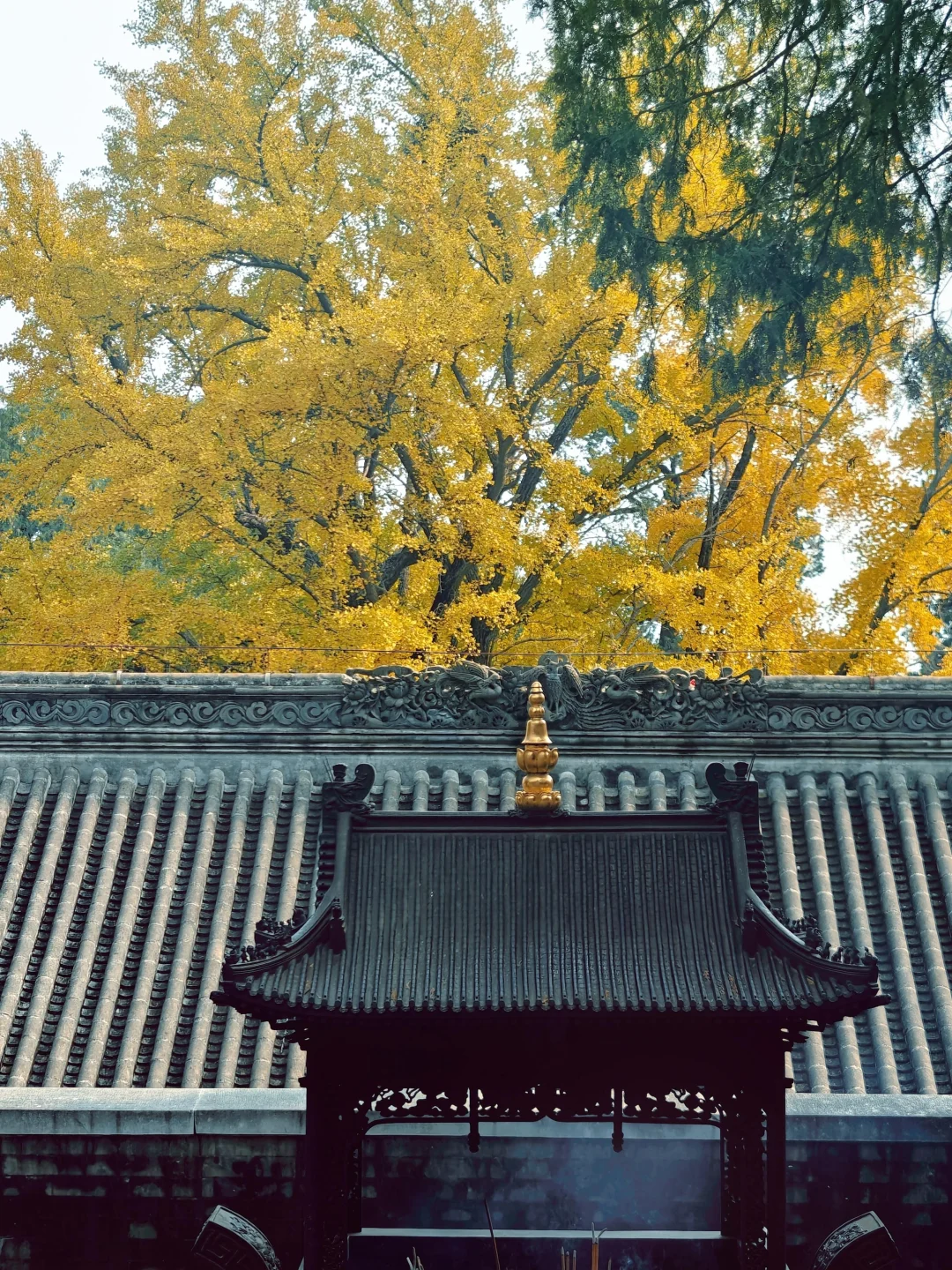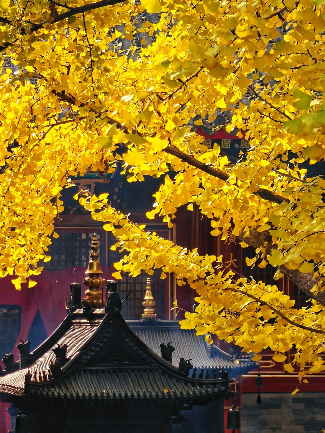 八大处秋色进度稍慢,大悲寺银杏已全黄!