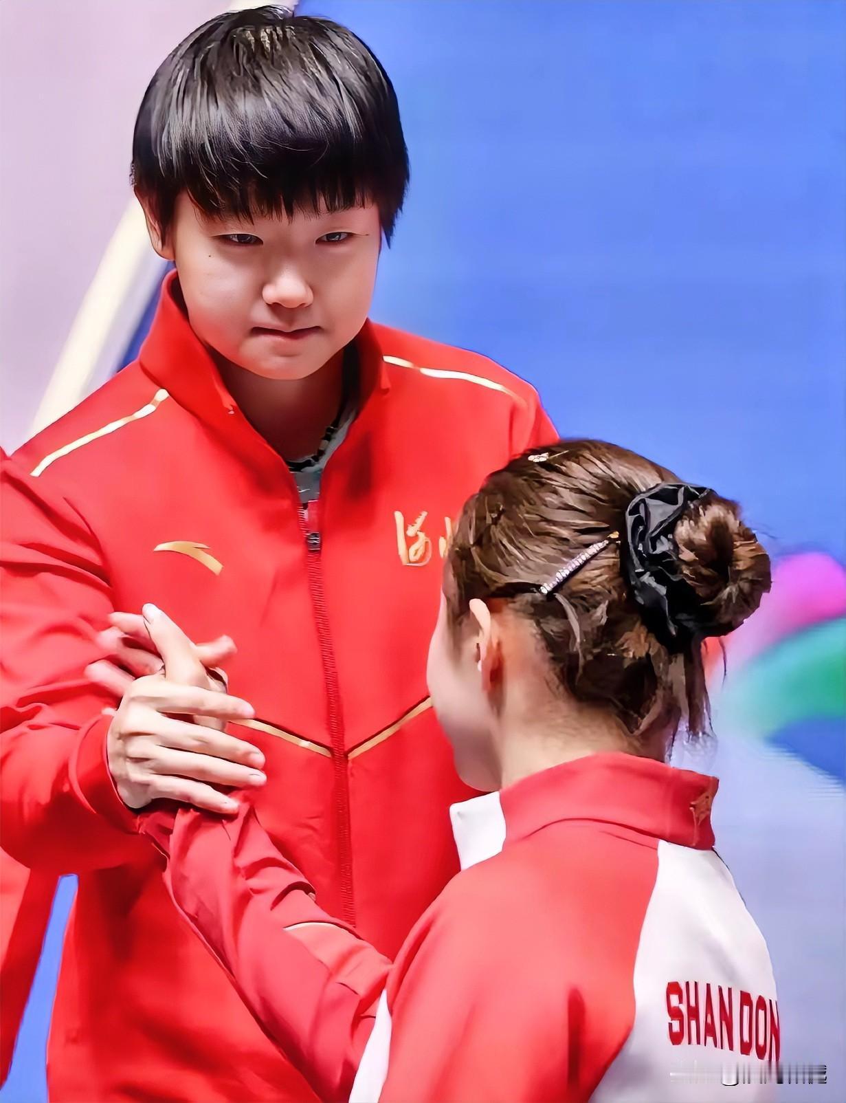孙颖莎与陈梦的最后一次赛场握手: 全运会乒乓球女团颁奖典礼上,冠军山东队与亚军河北队的握手时刻,留下了孙颖莎与陈梦的最后握手! 从国乒的好姐妹,孙颖莎和陈梦共同为中国乒乓球队一次次夺得世界冠军,到现在的最后握手,孙颖莎和陈梦为乒迷们留下了无数的难忘画面。 孙颖莎和陈梦是好姐妹,但两个人也是受伤害最深的,这不是由孙颖莎和陈梦来决定的,而她们却必须去承受的! 看孙颖莎凝视陈梦的眼神,莎莎是不会忘记她梦姐的。
