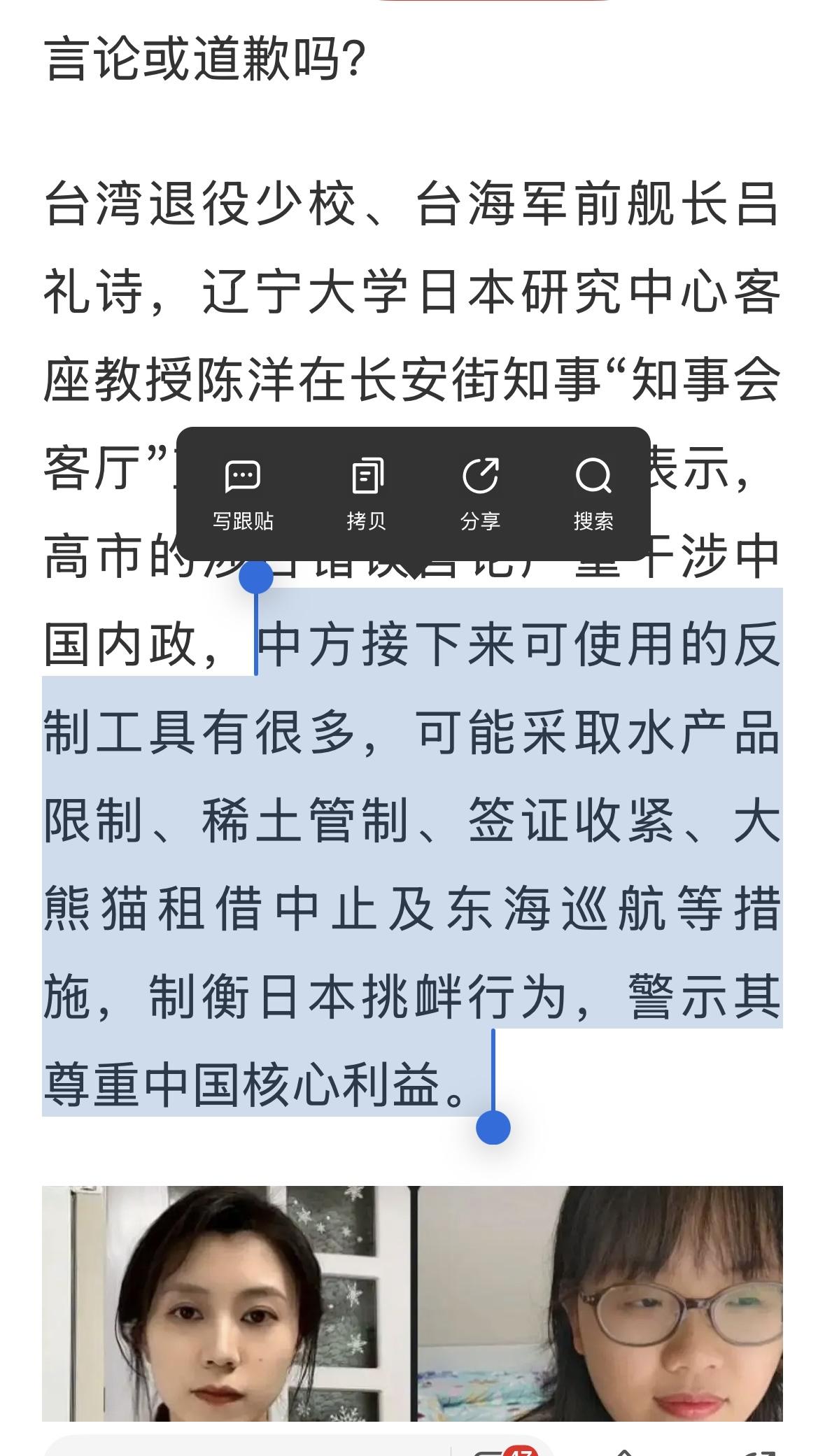 这篇文章的意思是。中方接下来可使用的反制工具有很多,可能采取水产品限制、稀土管制、签证收紧、大熊猫租借中止及东海巡航等措施,制衡日本挑衅行为,警示其尊重中国核心利益。张维为的建议是,马上动手解放台湾,然后看日本敢不敢动手,如果日本动手,趁早就把小日本灭了!你觉得哪个靠谱?你的高见是什么?