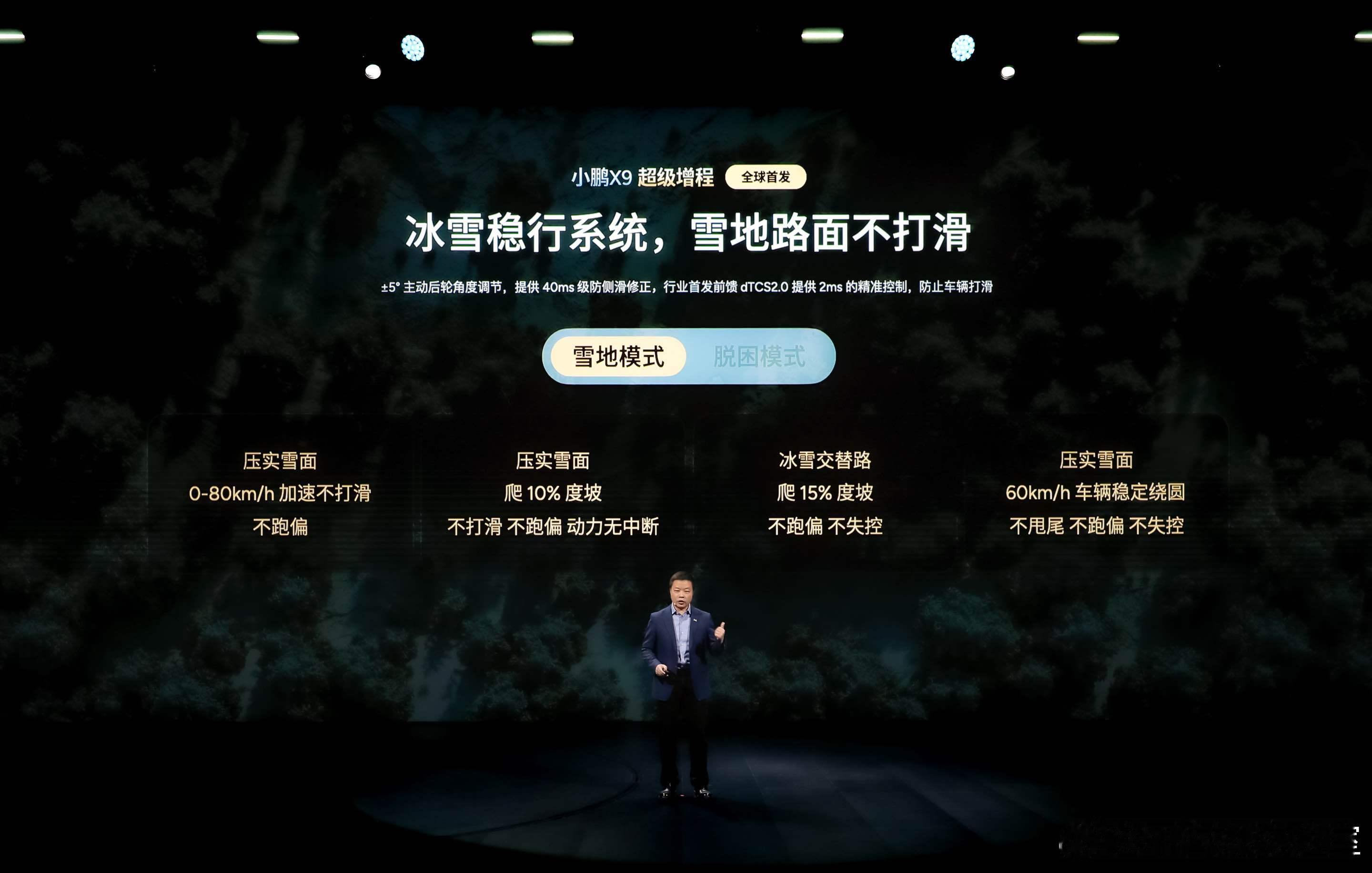 小鹏X9超级增程专为冰雪路况打造的冰雪稳行系统,在通过性、操控性与脱困能力三大维