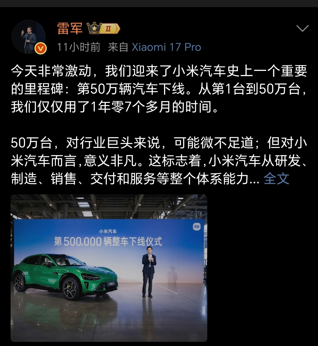 50万辆车这么快能达到,这量产的能力值得点赞,就是下次能不能用红色的车做营销,说不定能把股价带带