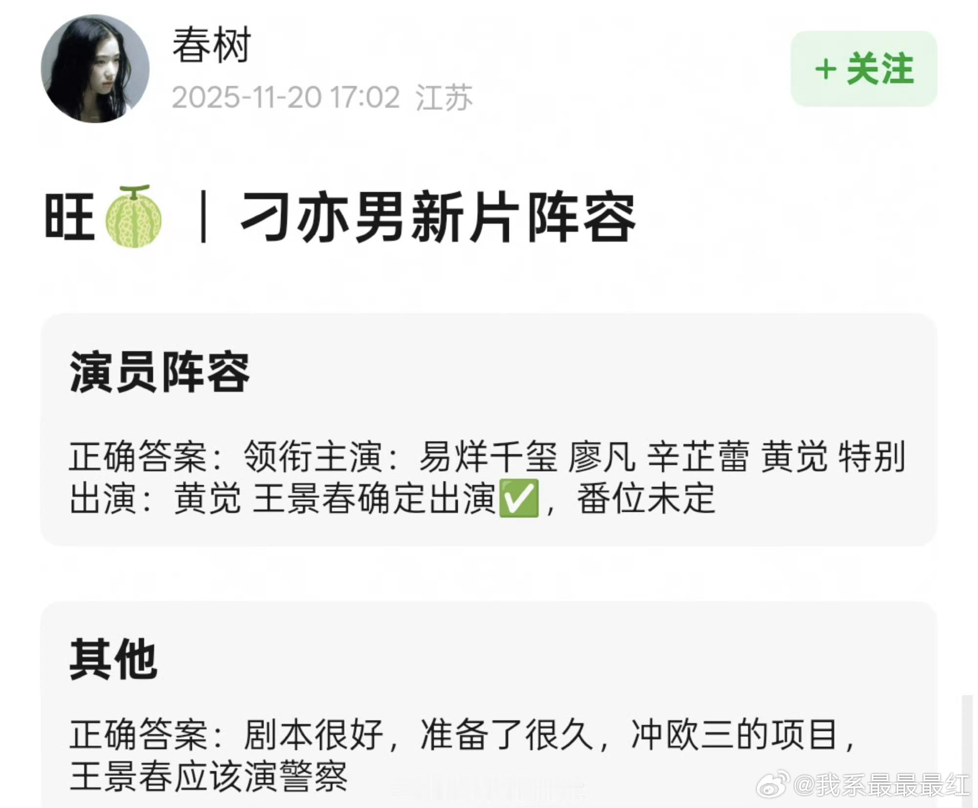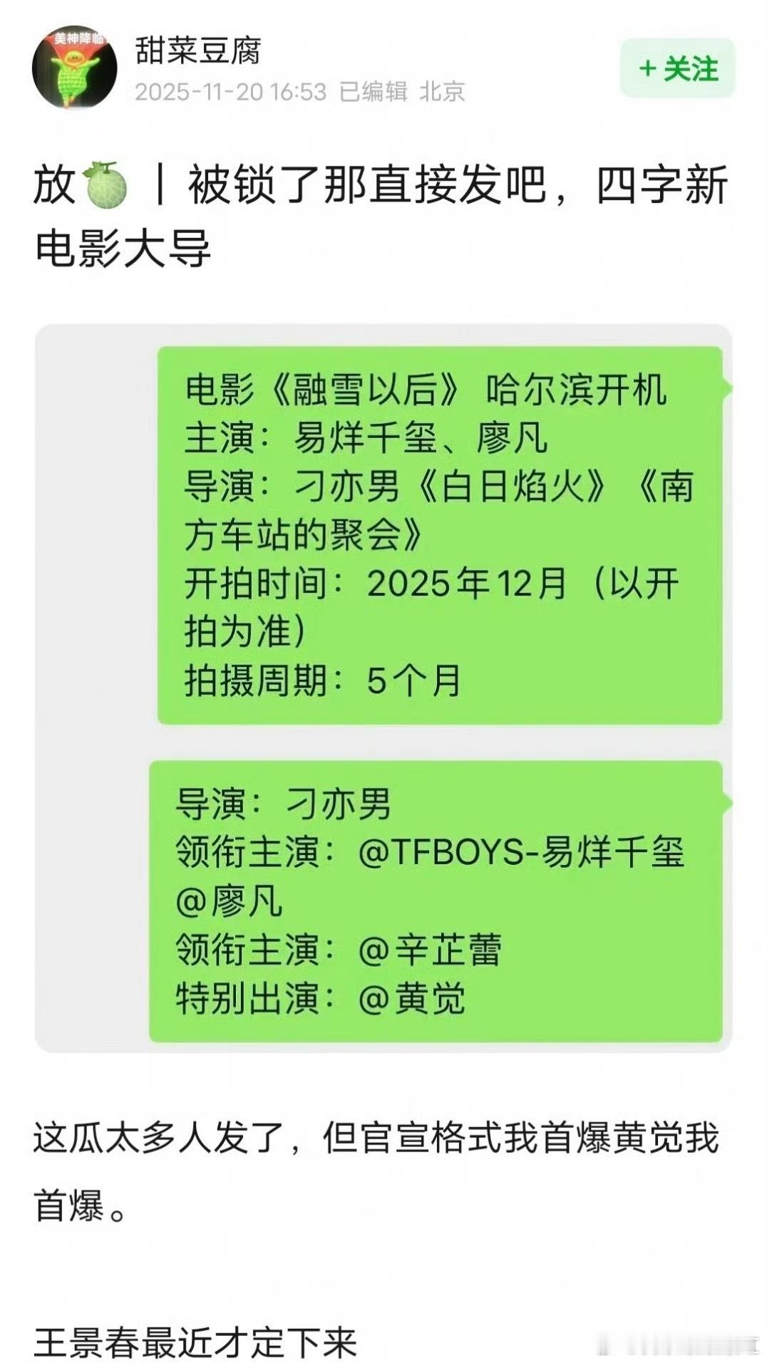 OMG四字新电影阵容一看就是要冲三欧的程度,易烊千玺金鸡影帝➕辛芷蕾威尼斯影后➕王景春东京影帝➕刁亦男🙉