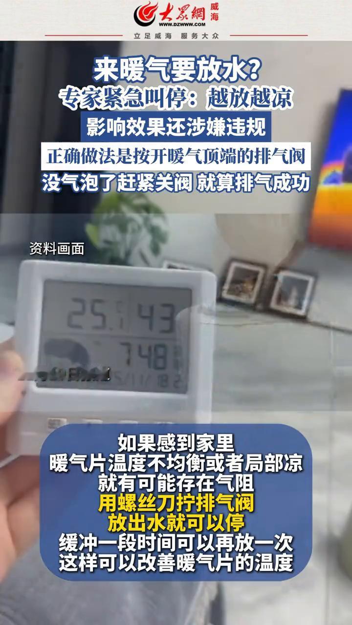来暖气要放水?专家紧急叫停:越放越凉,影响效果还涉嫌违规。 正确做法是按开暖气顶