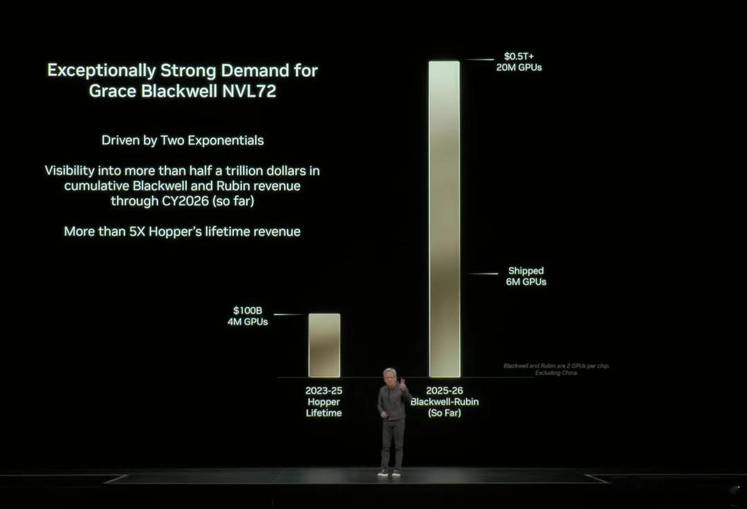 5000亿订单在手!垄断3-4万亿AI赛道 5000亿订单在手!英伟达这波“算力狂欢”,真能一直嗨?还在纠结AI算力需求会不会降温?英伟达FY26Q3财报直接给了答案。单季营收570.1亿美元,超预期近20亿,同比暴涨62%;调整后净利润317亿美元,日均净赚3.5亿美金——比不少科技公司全年营收还多。更狠的是,公司锁定FY27毛利率75%,还说Blackwell+Rubin平台到2026年底能稳拿5000亿收入。一边是全球GPU卖断货、500万个订单排队,一边是Rubin平台要登场、地缘有小波动,这台“算力印钞机”能转多久?01业绩拆解:每组数据都在“碾压预期”英伟达这季业绩不是运气,核心是AI算力需求真爆发了。营收盈利:量利齐飞,钱花不完营收:570.1亿美元,超预期551.9亿,环比涨22%,日均进账6.3亿美元。盈利:调整后EPS1.3美元,同比涨60%、环比涨24%;自由现金流220.9亿美元,同比增32%。毛利率:冲刺75%,赚钱效率再升级调整后毛利率73.6%,环比涨0.9个百分点,超预期。支撑逻辑有二:Blackwell平台量产,GB300成高毛利主力;规模效应对冲成本。还预告FY26Q4毛利率约75%(±0.5%)——全球科技巨头里独一档。股东回报:前九个月返还370亿美元(回购+股息),剩余回购额度622亿美元。细分业务:数据中心独挑大梁数据中心(核心):营收512亿美元,同比涨66%、环比涨25%,占总营收90%。计算业务涨56%(GB300撑场);网络业务翻倍至82亿美元(NVLink、Spectrum-X发力)。来源:英伟达官网财报ppt游戏业务:43亿美元,同比涨30%、环比跌1%,仍是基本盘。专业可视化:7.6亿美元,同比涨56%、环比涨26%,专业领域AI需求爆发。汽车业务:5.92亿美元,同比涨32%,略低于预期,自动驾驶未来可期。02需求疯抢:GPU抢破头,5000亿订单排到2026底黄仁勋说:“训练和推理需求都在指数级涨,我们进了AI良性循环。”这话有硬支撑。可谓是订单多到“手软”公司重申:2025-2026年Blackwell+Rubin平台收入能见度5000亿美元,可上修。来源:英伟达GTC大会新合作重磅:-与Anthropic签1吉瓦算力协议;-与沙特定3年供40-60万个GPU。本季度AI项目需500万个GPU,云厂商、主权国家、科技公司都在抢。简直是全场景需求无淡季云端:亚马逊AWS、微软Azure疯狂建AI数据中心,GPU全满载售罄。企业端:金融、医疗、制造搞私有AI模型,中高端GPU不够用。主权AI:部分国家自建算力设施,增速快成新增量。关键信号:OpenAI周活8亿,Anthropic年化营收70亿美元——需求才刚开头。地缘小插曲不影响全局H20产品本季度无大额订单,收入预期为零(地缘+中国竞争)。公司会跟中美政府沟通补缺口,且老产品仍赚钱:-Hopper平台贡献20亿美元;-H20销售额5000万美元。03Blackwell霸榜,Rubin已在路上英伟达垄断AI赛道,靠的是技术硬。Blackwell平台:GB300成主力,性能碾压GB300营收占比超GB200,贡献Blackwell近2/3收入。性能:-训练比Hopper快5倍;-推理性能功耗比、单token成本比H200优10倍。客户认可:AWS计划部署15万个含GB300的加速器。Rubin平台:2026下半年登场Blackwell升级款,搭7颗芯片,目标“X倍”性能提升。当前硅片已回片,生态就绪;封装面积比Blackwell大50-60%,高端训练优势突出。CUDA生态:别人抄不走CUDA像“算力界iOS”,绑定开发者和客户:-无CUDA的加速器易被淘汰;-英伟达GPU用6年仍能升级性能,满负荷运行。OpenAI、Anthropic都与其合作或接受投资。网络业务:全球最大,增速翻倍营收82亿美元,同比涨162%,成全球最大AI网络业务。NVLink、InfiniBand、Spectrum-X三驾马车发力,还推出Spectrum-XGS支持千兆AI工厂。04合作与供应链:绑定巨头,筑牢护城河英伟达的爆发,靠产业链支持和精准合作。合作伙伴:全领域覆盖AI领军企业:-与OpenAI合作建10吉瓦数据中心;-首次与Anthropic深度合作,引入其模型。软件巨头:ServiceNow、SAP等整合其技术,Palantir肿瘤平台用CUDA-X库。传统龙头:卡特彼勒、丰田靠其数字孪生技术,打开万亿市场。供应链:盯死关键产能建全球韧性供应链,核心伙伴台积电、富士康、纬创。台积电CoWoS产能:-2026年底月产10.5万片;-2027年提至14.1万片。还与SK海力士、美光谈HBM4供应,黄仁勋:“供应链是生命线。”竞争格局:合作对冲对抗对英特尔等对手:“既是对手也是客户”,用合作减对抗。虽ASIC客户或分走市占率,但Rubin上市后性能优势会拉大,大摩预测替代方案热度将降。05AI泡沫破灭论?业绩是最好的底气英伟达FY26Q3财报用实打实的数据,彻底证伪了全球投资者对AI泡沫的担忧。单季570.1亿美元营收、317亿美元净利润,同比分别暴涨62%、60%,日均净赚3.5亿美金的成绩,绝非“概念炒作”能支撑。更关键的是,公司手握5000亿美元订单能见度,全球500万个GPU订单排至2026年底,从云端到企业端、主权AI市场全场景需求爆发,印证AI算力是真实刚需而非虚火。盈利质量同样打脸泡沫论:73.6%的毛利率逼近75%目标,Q4指引更是锁定这一水平,Blackwell平台量产带来的产品结构升级,让赚钱效率持续提升。再加上CUDA生态的不可替代性、Rubin平台的技术储备,以及台积电CoWoS产能的持续支撑,英伟达的增长既有短期订单托底,又有长期技术与生态壁垒护航。这场财报清晰表明,AI不是转瞬即逝的泡沫,而是正在重塑全球产业的真实革命,其需求韧性与盈利潜力,远非泡沫论所能否定,这正是我们最近一系列文章所重点强调的《清仓英伟达?科技大佬新信号?》《AI无底洞?债务“爆雷”了吗?》《AI泡沫要破裂了吗?这次真不一样!》06未来信号与长期逻辑:高增长能续吗?想判断英伟达高增长能不能续,未来1-2年要盯紧三个信号:一是FY