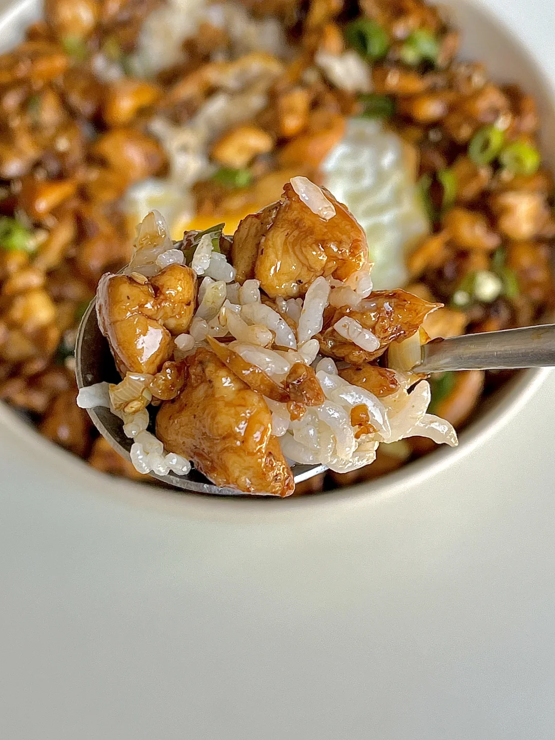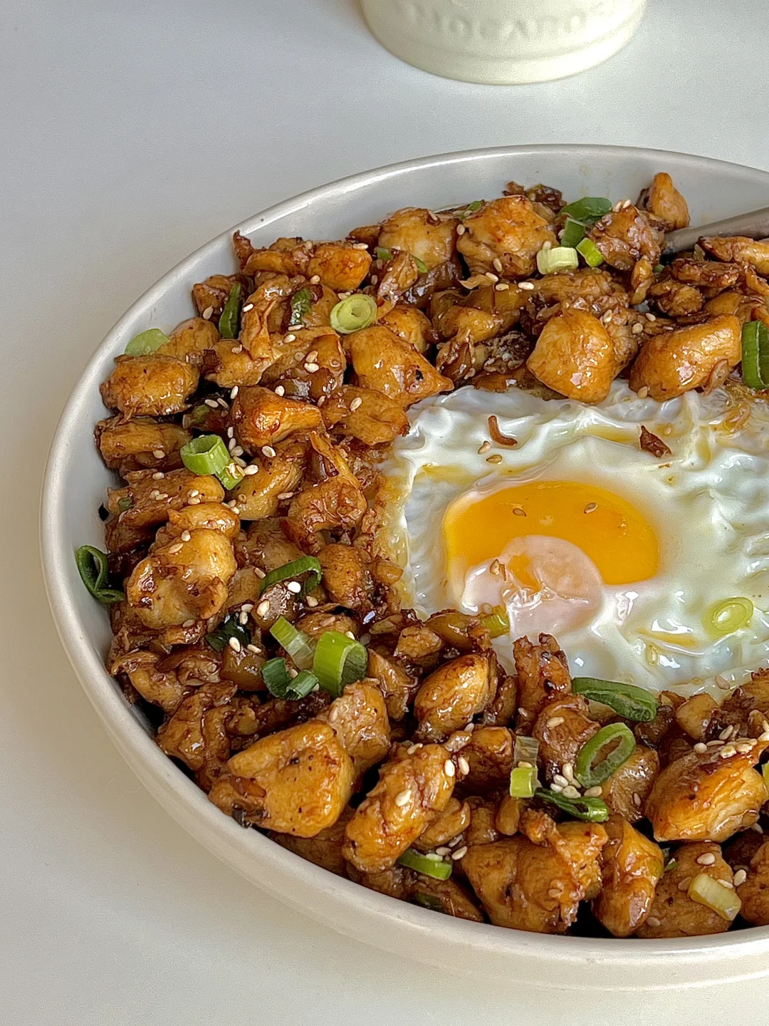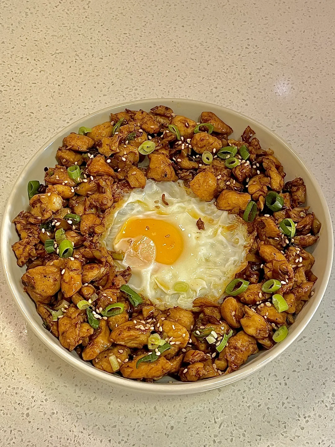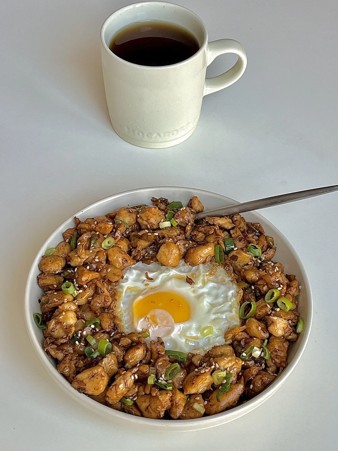 夏日消暑风味集 今日份一人食健康午餐分享: 日式碎鸡饭🍚 一杯冰大麦茶 . 食材:鸡小胸 榨菜丝 鸡蛋 做法如图上⬆️ . 鸡小胸可以换成鸡腿肉,鸡小胸做出来也是很嫩的 大家都去做,巨好吃下饭😋