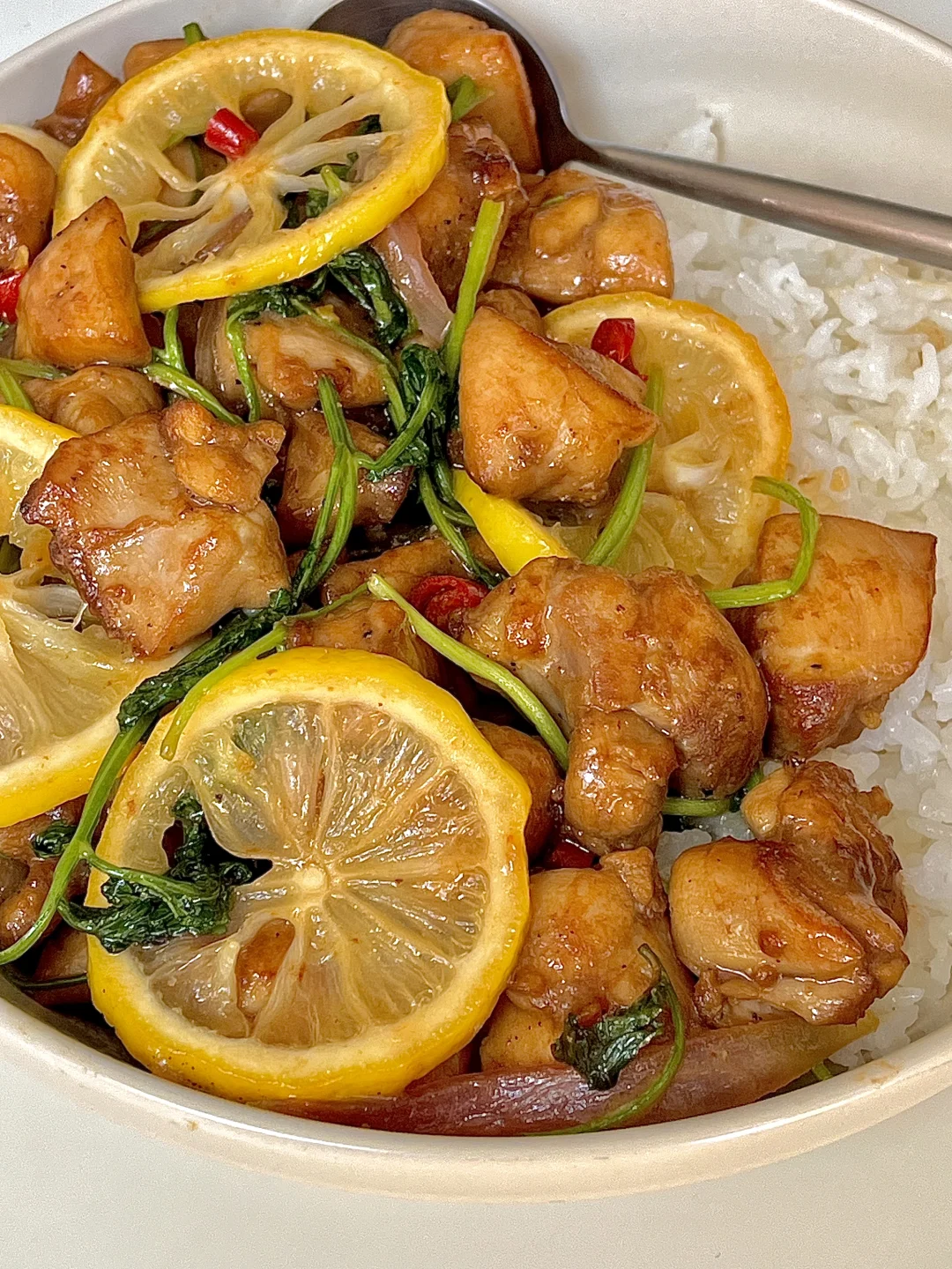 夏日清爽盖饭~柠檬煎鸡腿🍋