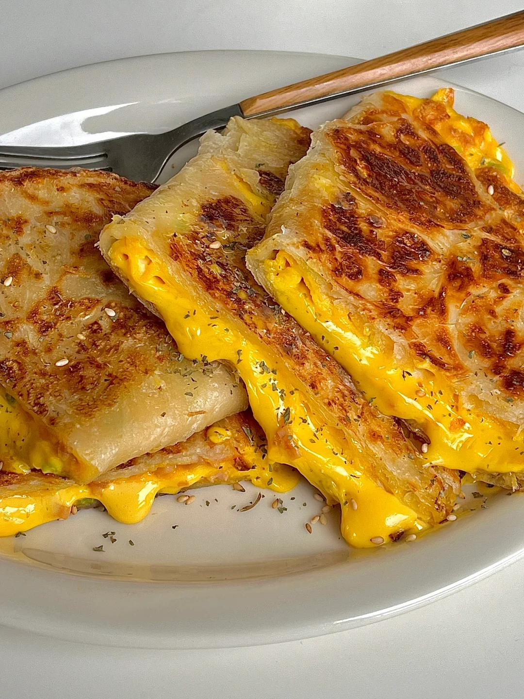 🔥手抓饼的神仙吃法!葱香肉松爆浆芝士😋
