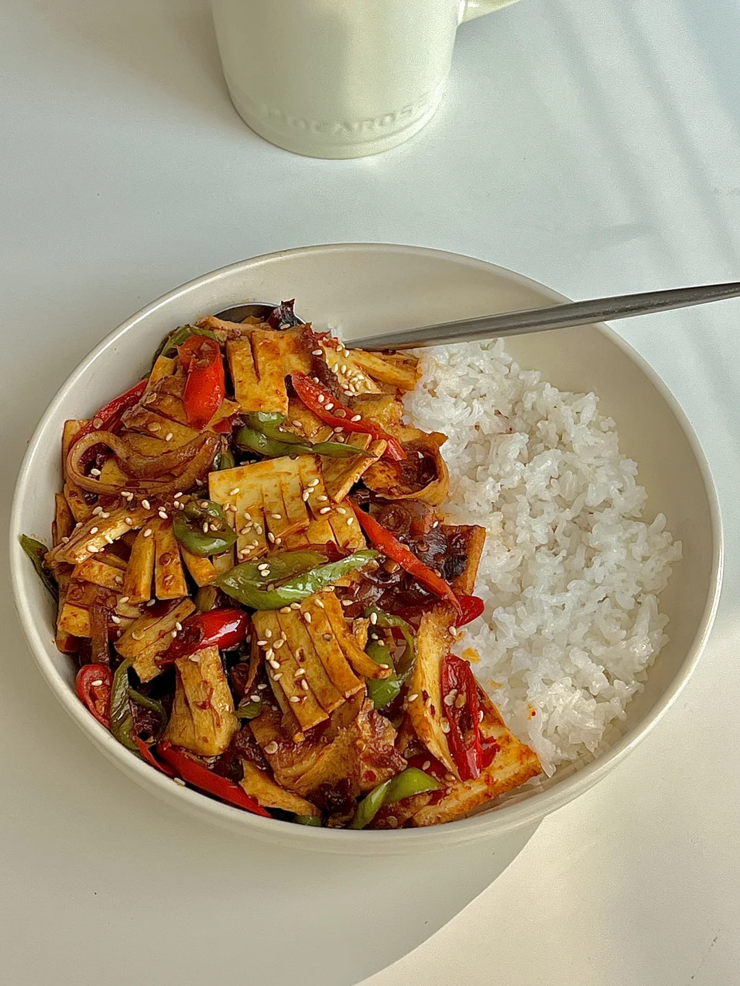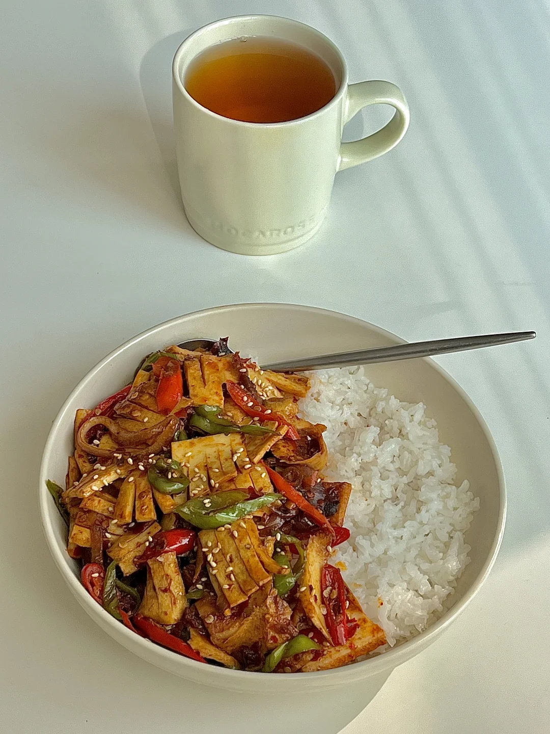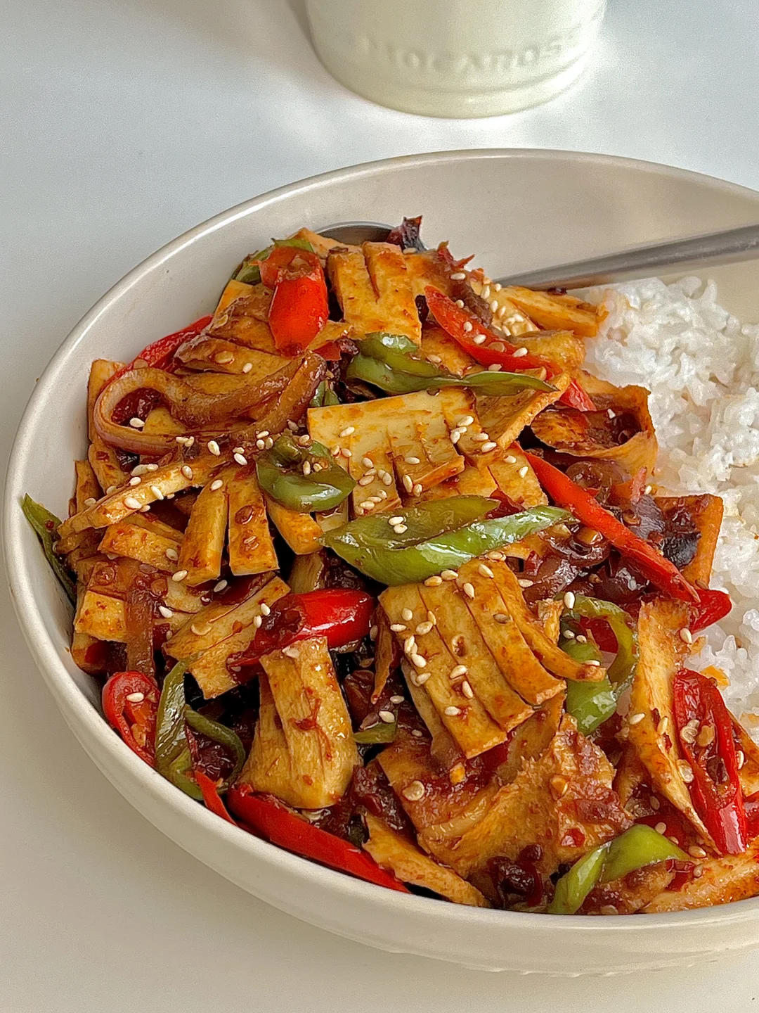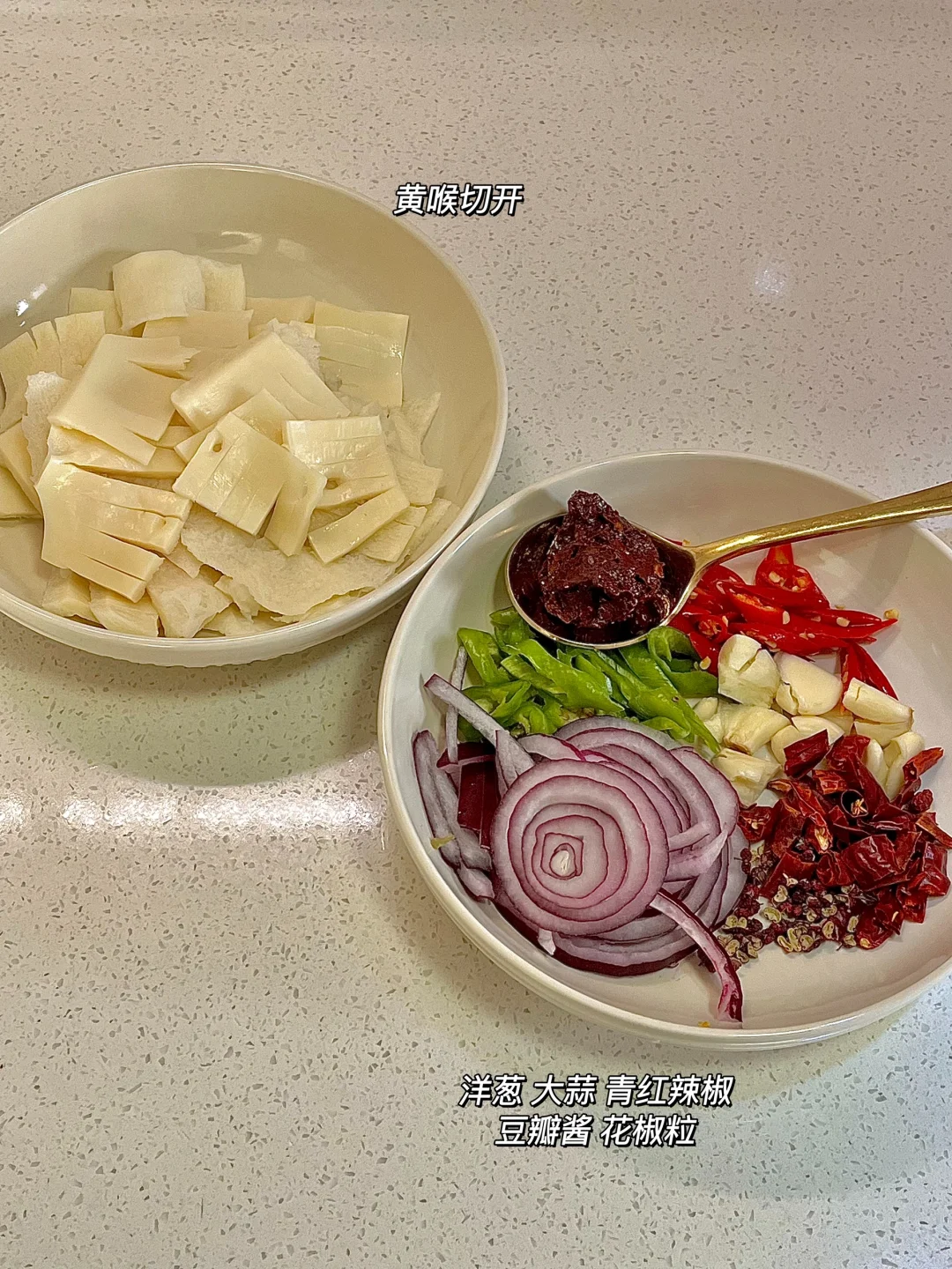 我家的春天真好吃 今日份一人食健康餐分享: 爆炒黄喉 白米饭🍚 一杯荞麦茶 . 食材:牛黄喉(猪黄喉更好吃)洋葱 青红辣椒 大蒜 花椒粒 干辣椒段 红油豆瓣酱 做法如图上⬆️ . 有没有人跟我一样喜欢黄喉的,脆脆的口感😋巨好次,我用的是牛黄喉它会比较厚,用猪黄喉会更薄更好吃。除了吃火锅也可以试试这个做法,贼下饭