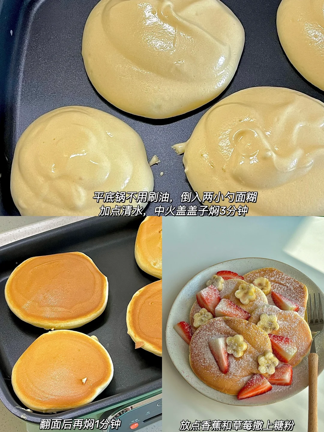 平底锅就能做的无油舒芙蕾松饼🥞
