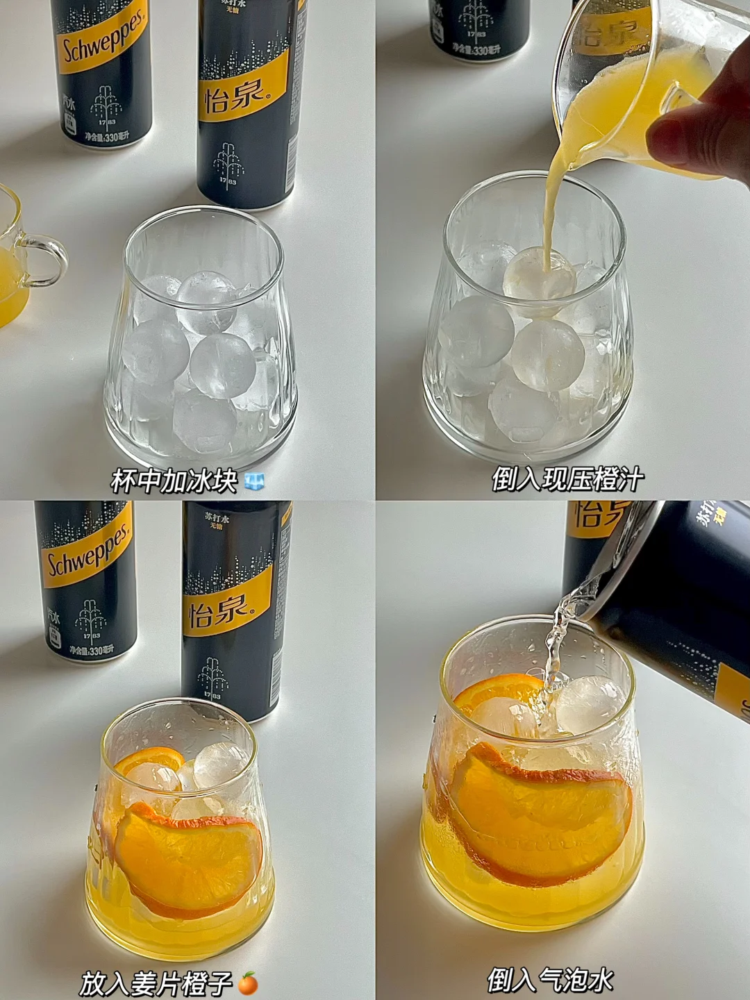 橙汁气泡水做法: