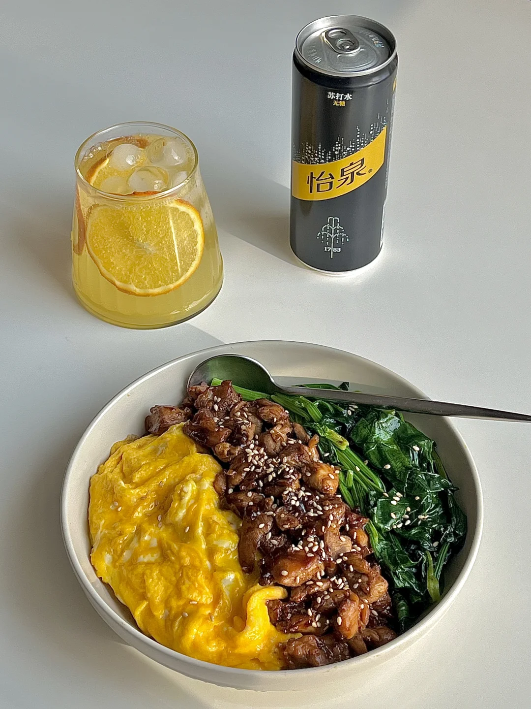 最近都是一个人的健康餐,除了会喝茶,还会搭配怡泉的气泡水!