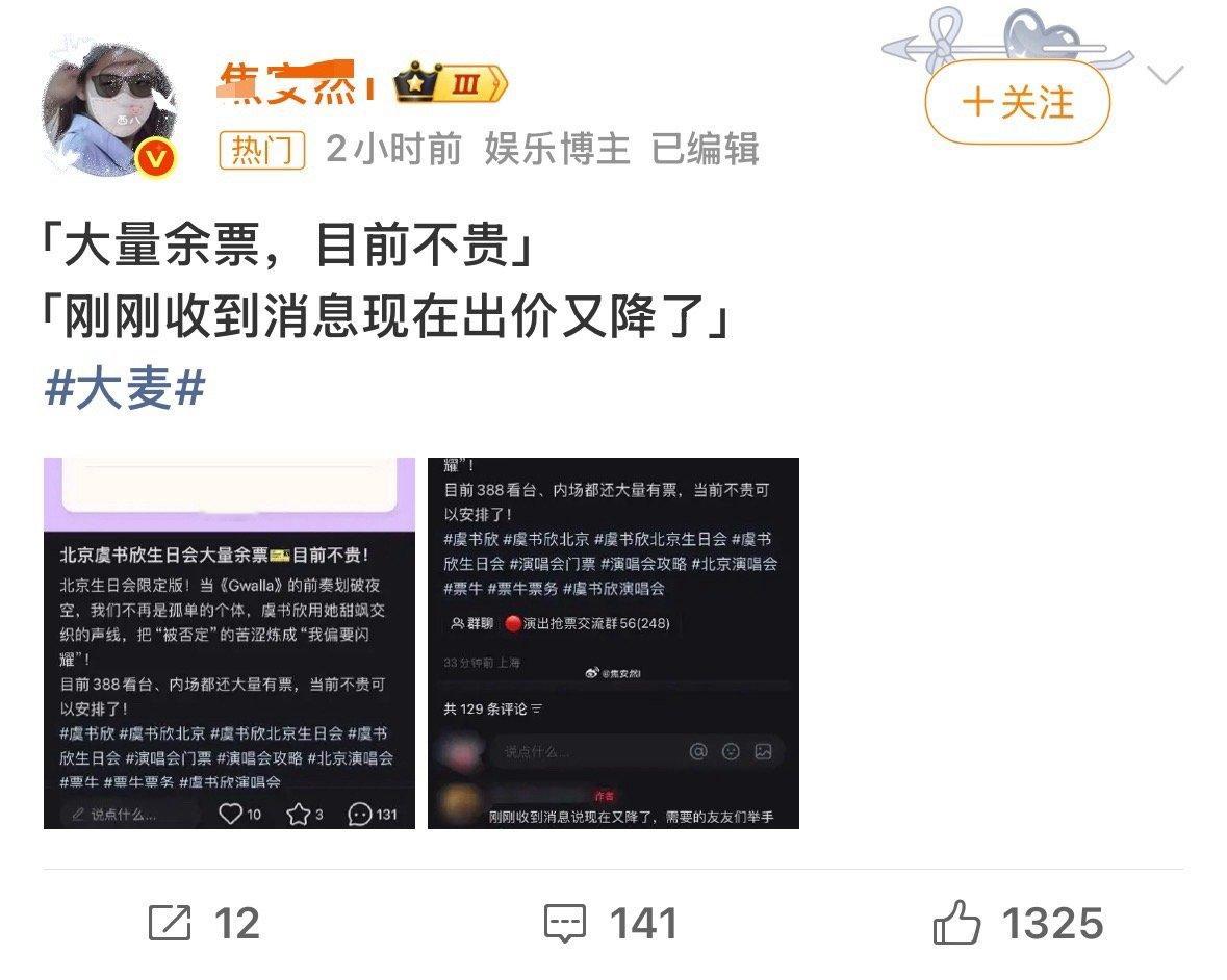 我代拍和十几个朋友都没有抢到,你们又有大量余量了,神来的大量余量,你们几个发黑稿子都不得改文案的,人大麦认证虞书欣生日会门票已经秒售空了哈。
