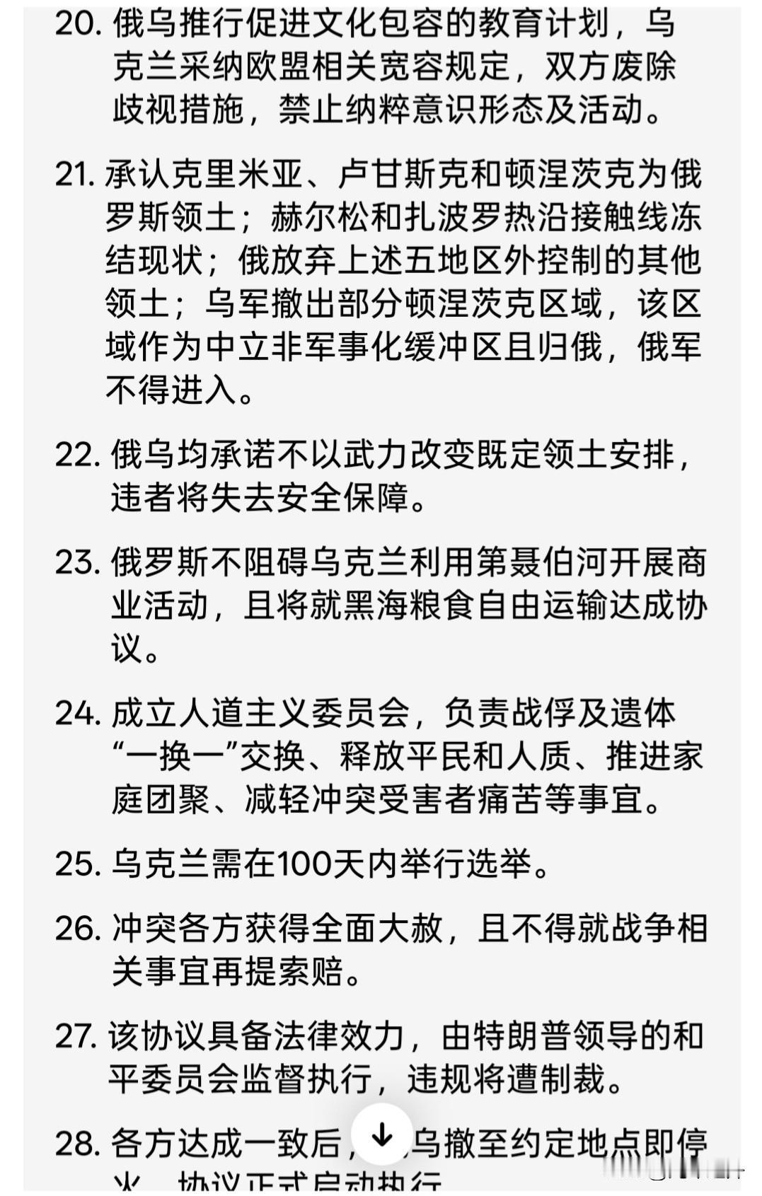 特朗普28条是给乌克兰量身定做的“战败投降书”! 割领土、禁入约、限军备,美式“公平调解”堪称霸权逻辑的荒诞样板。 泽连斯基字一签,乌克兰正式战败!