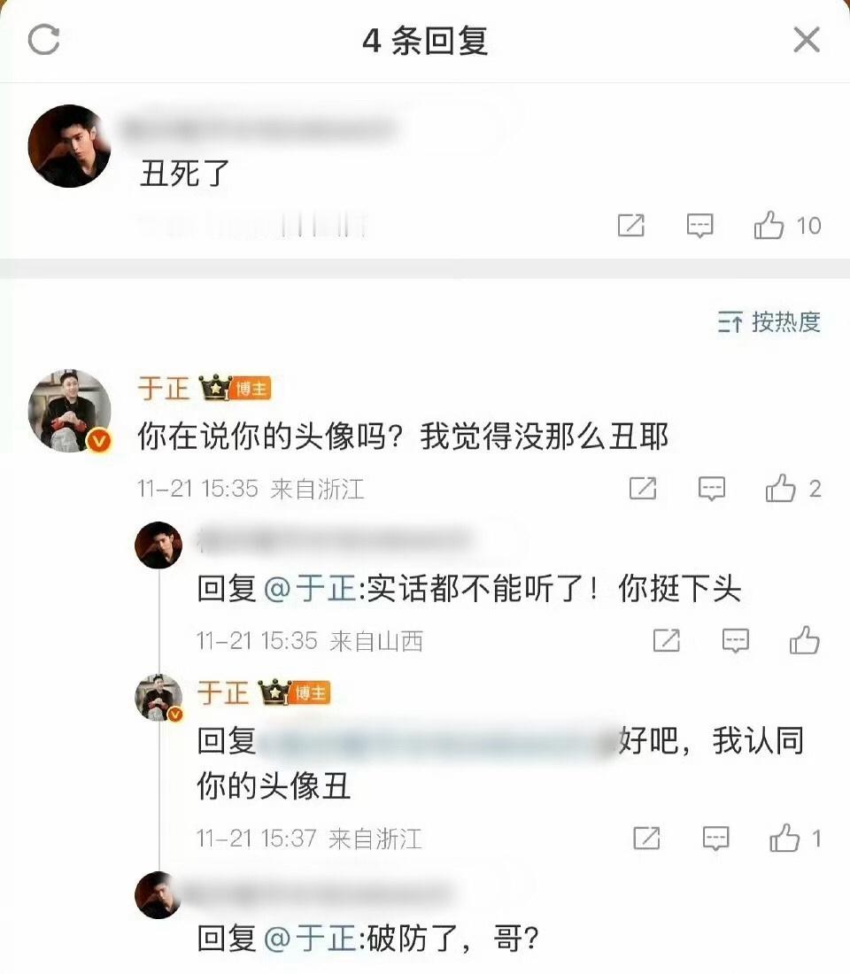 我很支持陈哲远粉丝的看法的,真的吃藕,不过还是建议一下,远离于正不要去他微博互动,陈哲远又是体面人,又不像他那样不要lian,还被弄了这个烫搜,无妄之灾!