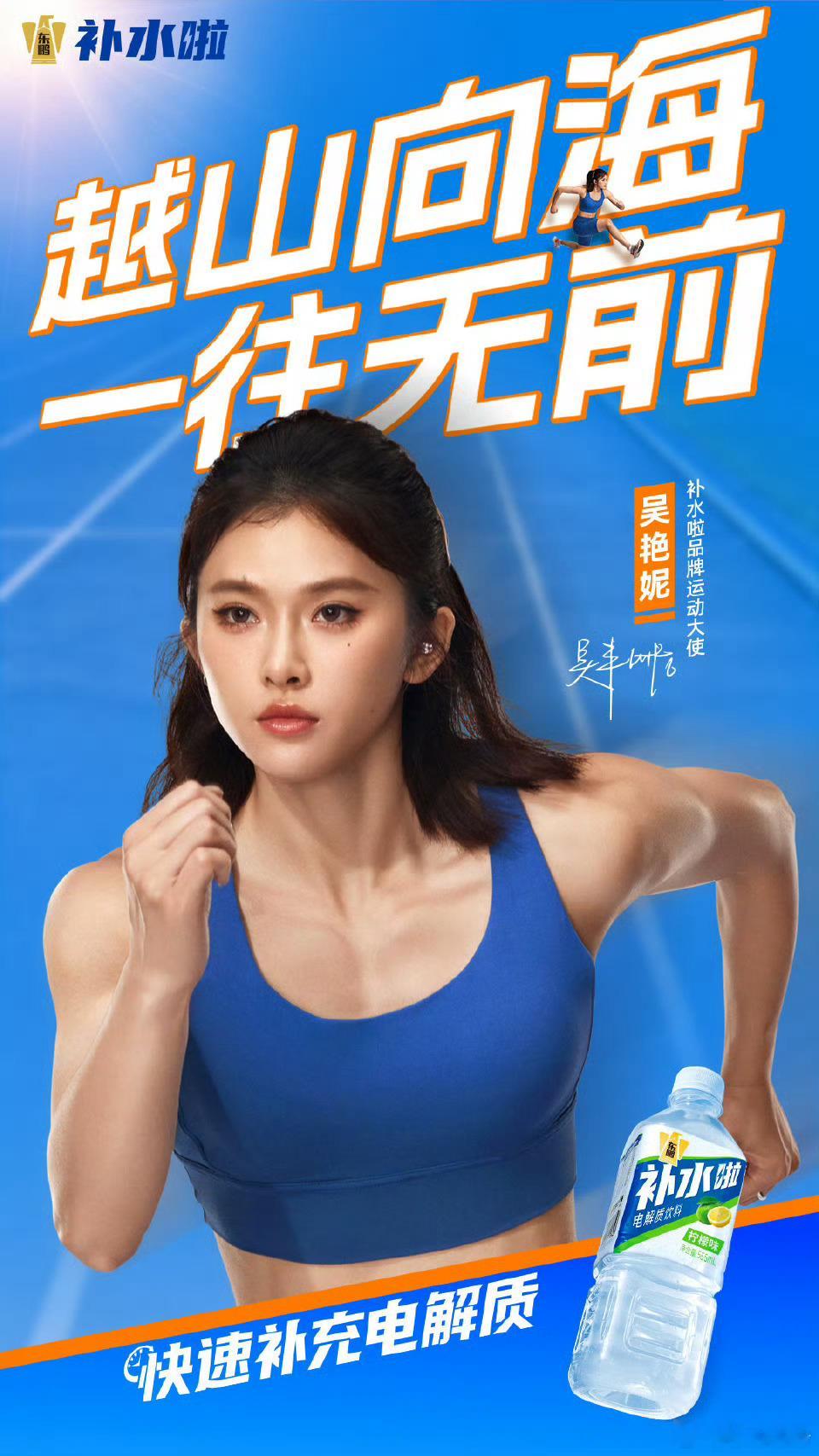 和补水啦一起为吴艳妮加油吴艳妮在全运会女子100米栏中跑出了12秒85的赛季最佳,与冠军相差0.04秒而失之交臂,拿了亚军。 在大家眼里,这已经相当厉害了,但作为国内女子100米跨栏的一姐,吴艳妮自己对这个成绩并不满意。 在赛场上,她永远拼尽全力,想争夺第一。 训练场上,她的全力以赴,也是有目共睹。 优秀的成绩,与一次次挥汗如雨的训练分不开,要保持体力,锁住状态,就一定要充分补水。 尽情流汗痛快补水,每一滴全力以赴的汗水,都值得最痛快的回应。 东鹏补水啦,是吴艳妮的补水神器,它能快速补充电解质,不负每一次拼搏,助力每一次精彩。