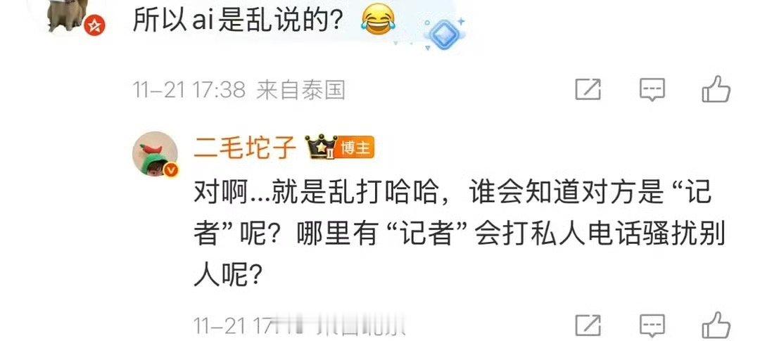 11月21日,易梦玲好友网红 回应热搜,称易梦玲是乱说的,不知道打电话的是“记者”,以为是私生。