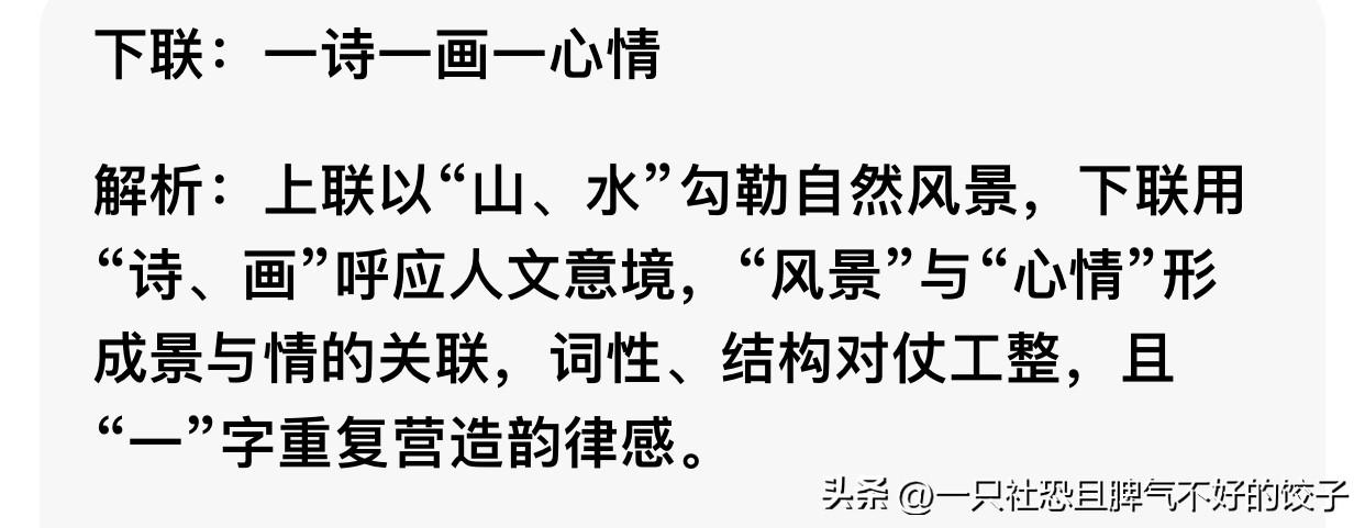 上联:一山一水一风景,如何对下联