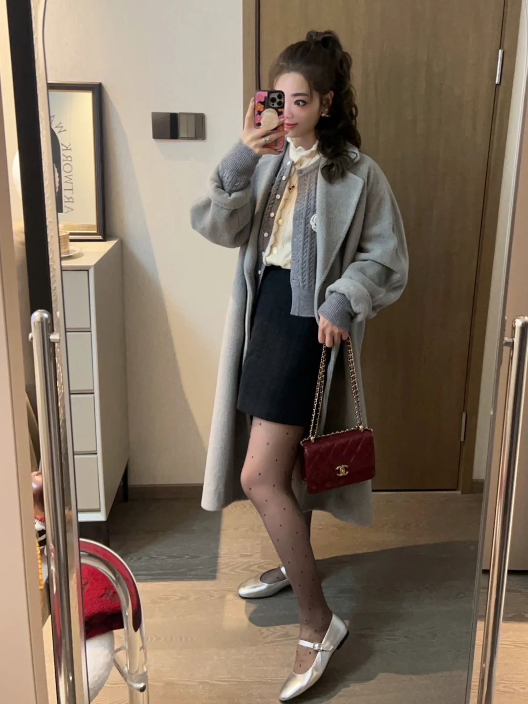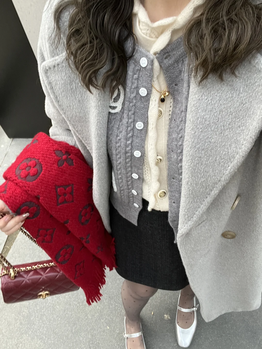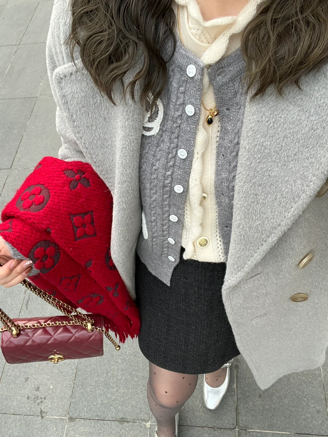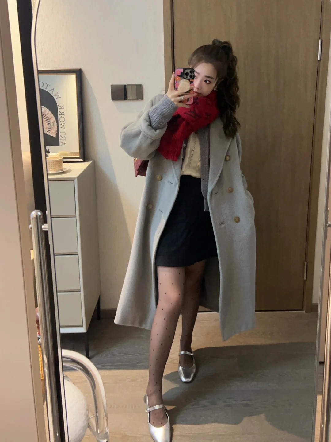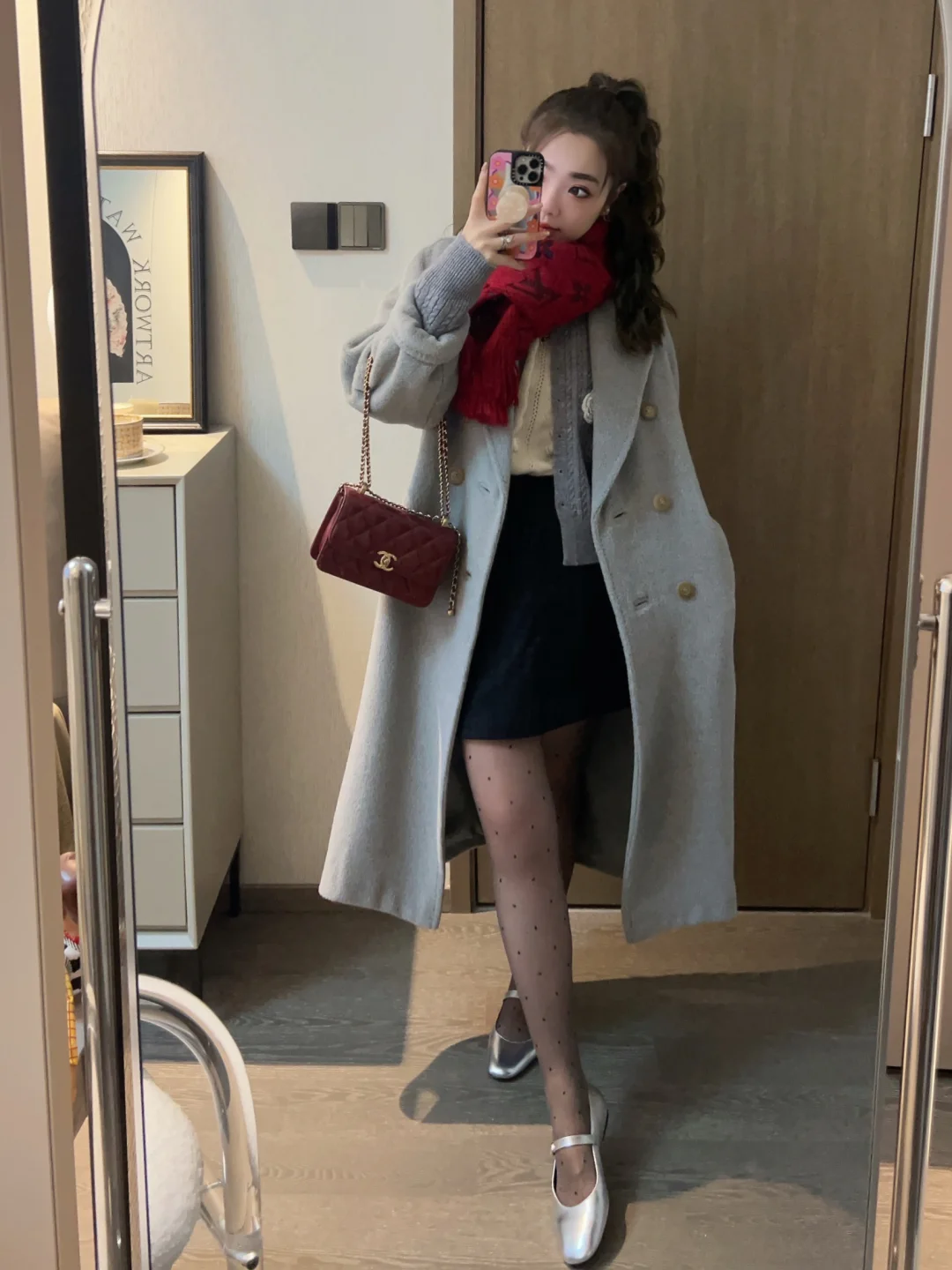 这套也太减龄了叭!灰色大衣简直百穿不腻!❄️