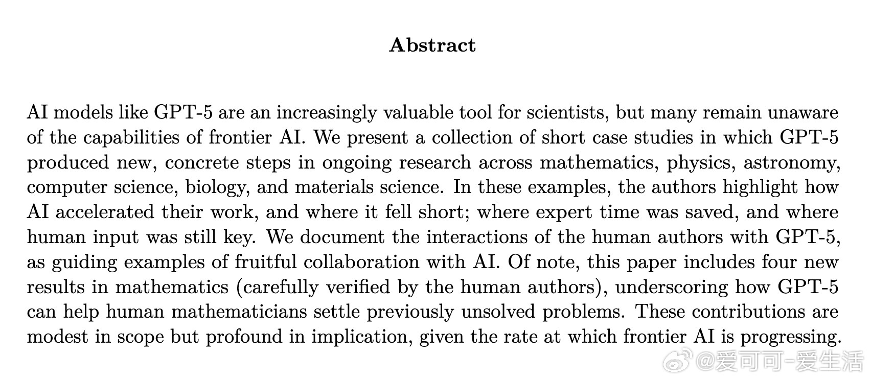 [CL]《Early science acceleration experiments with GPT-5》S Bubeck, C Coester, R Eldan, T Gowers... [OpenAI & University of Oxford] (2025) 本文详细记录了GPT-5在科学研究中的应用案例,涵盖数学、物理、天文学、计算机科学、生物学和材料科学等多个领域,展示了GPT-5如何作为研究助理加速科学发现的过程。主要内容与亮点包括:1. 独立重现前沿已知结果 GPT-5在凸优化、黑洞物理和免疫系统实验分析中,能够基于已有文献和数据,独立推导或重现新的理论结果。例如,在凸优化中,GPT-5改进了梯度下降步长的条件,接近最新论文的最佳界限;在黑洞对称性研究中,GPT-5成功发现了Kerr度规下波动方程的非平凡Lie对称群结构。2. 深度文献检索能力 GPT-5能够跨领域、跨语言识别和整合相关文献,帮助研究者发现潜在关联和遗漏的经典结果。论文中展示了GPT-5如何辅助解决Erdős数学问题,定位多篇几十年前的解决论文,极大节约了文献调研时间。3. 人机协同研究流程 人类研究者与GPT-5共同合作,在问题定义、模型构建、证明尝试等环节互补。经典案例包括著名数学家Timothy Gowers利用GPT-5快速验证定义和子问题、物理学家Robert Scherrer借助GPT-5解析宇宙弦引力波谱,以及Brian Spears与GPT-5合作建立简化热核燃烧模型。4. 新科学成果诞生 GPT-5不仅帮助重现和检索知识,还贡献了新的研究进展。论文详细介绍了GPT-5在组合数论难题Erdős问题848的解决过程中的关键思路,以及辅助证明在线算法的新的下界,推动了理论计算机科学研究。数学领域中,GPT-5重新证明并拓展了树图子图计数不等式,解决了部分长期悬而未决的猜想。5. 生物医学机制分析 GPT-5 Pro解析体外免疫实验数据,准确推断代谢抑制对T细胞分化的影响机制,提出了实验验证方案,并预言CAR-T细胞的功能改进,显示了在生物医学研究中作为“机制共探者”的能力。6. 局限与未来展望 论文诚实指出GPT-5当前仍存在错误和自信过度的情况,需要人工严格监督和验证。尽管如此,GPT-5已显著提升了科研效率,展望未来,随着模型能力持续增强,科学研究将迎来爆发式加速的新时代。全文详见:arxiv.org/abs/2511.16072