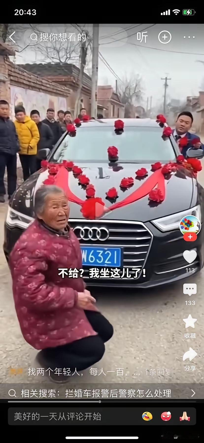 拦婚车要600元红包,新郎家说给200元红包,老太太说,200,你打发要饭的呢?不给我,就坐在婚车前。 这样的场景大家觉得怎样?这老人真是……给他儿女丢人, 最后感叹一句,坏人还是那个坏人,只是变老了……