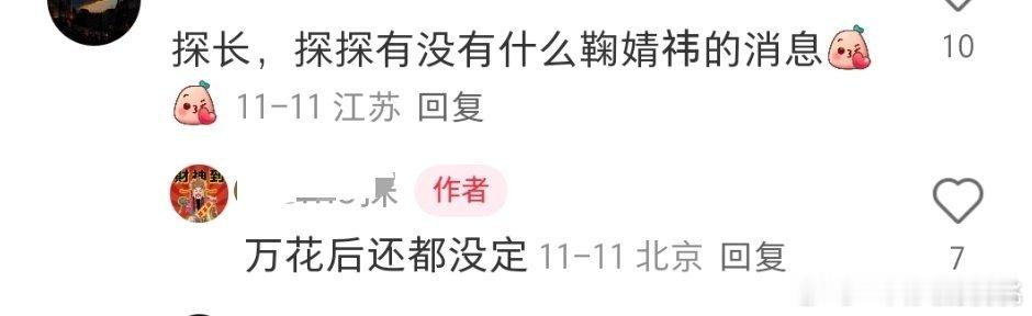 一些回复🍉烛月最快春节后鞠万花后还没定项目酱焖阵容不变邓为目前还没定
