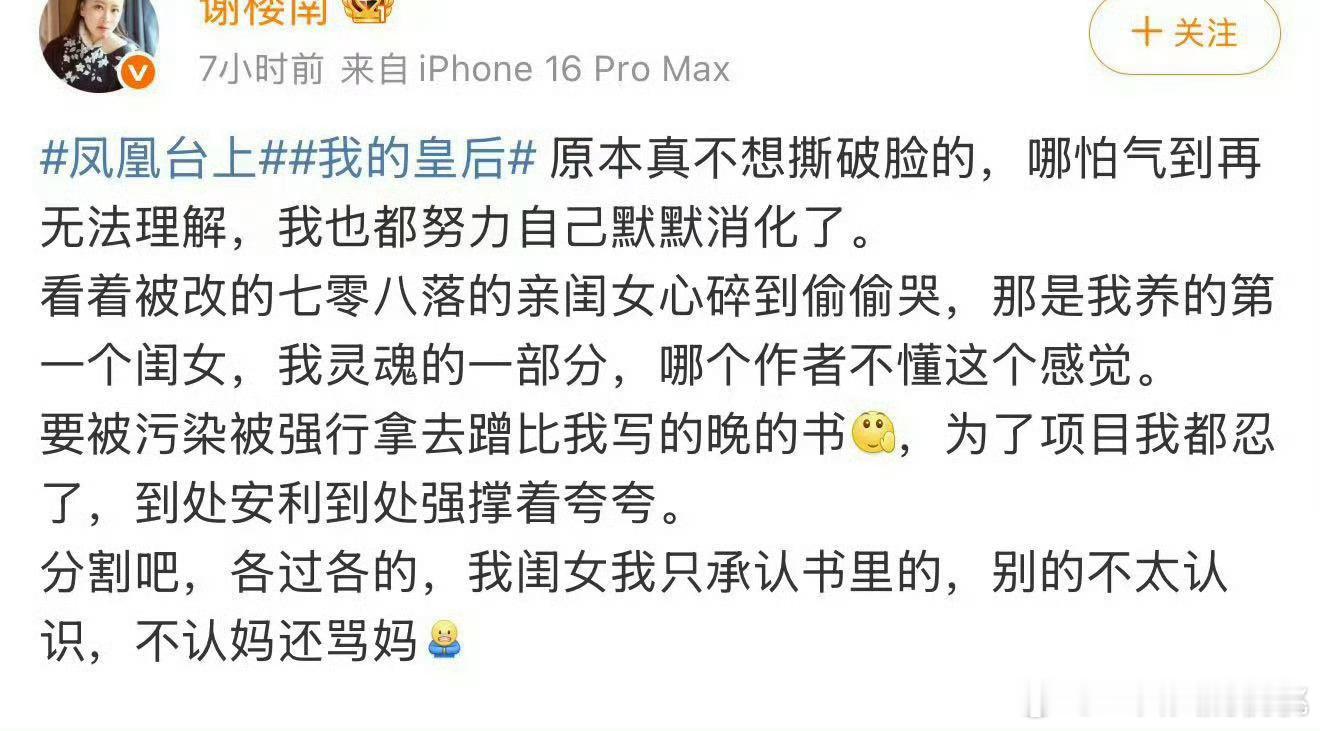 凤凰台上作者大半夜转发吐槽女主人设nh女主演技的小论文…… 她在干嘛