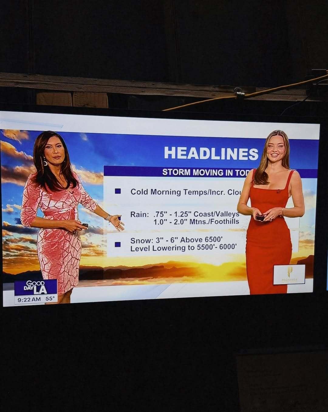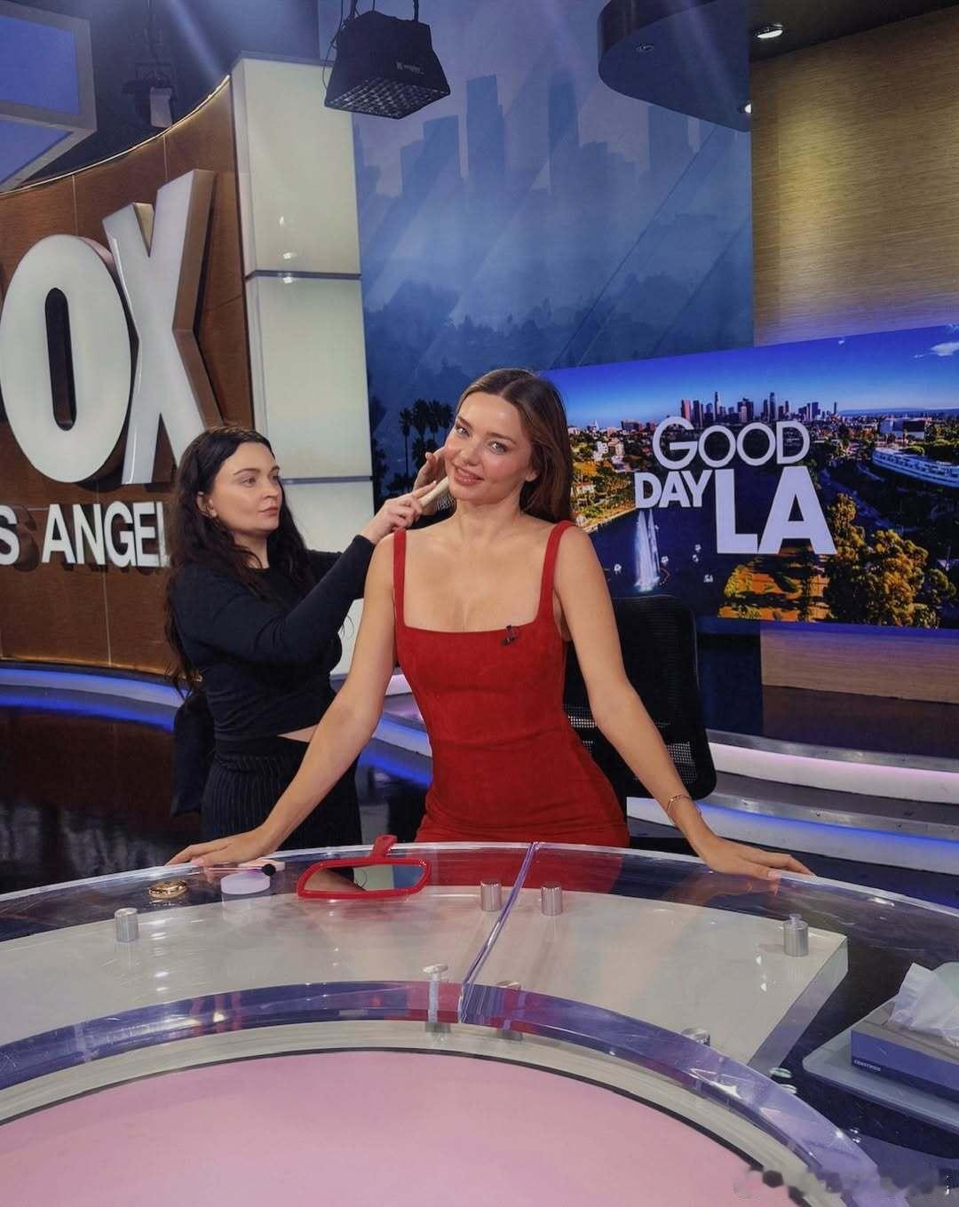 米兰达·可儿身穿Alex perry吊带红裙参加《Good Day LA》节目的拍摄花絮,美丽女主播!