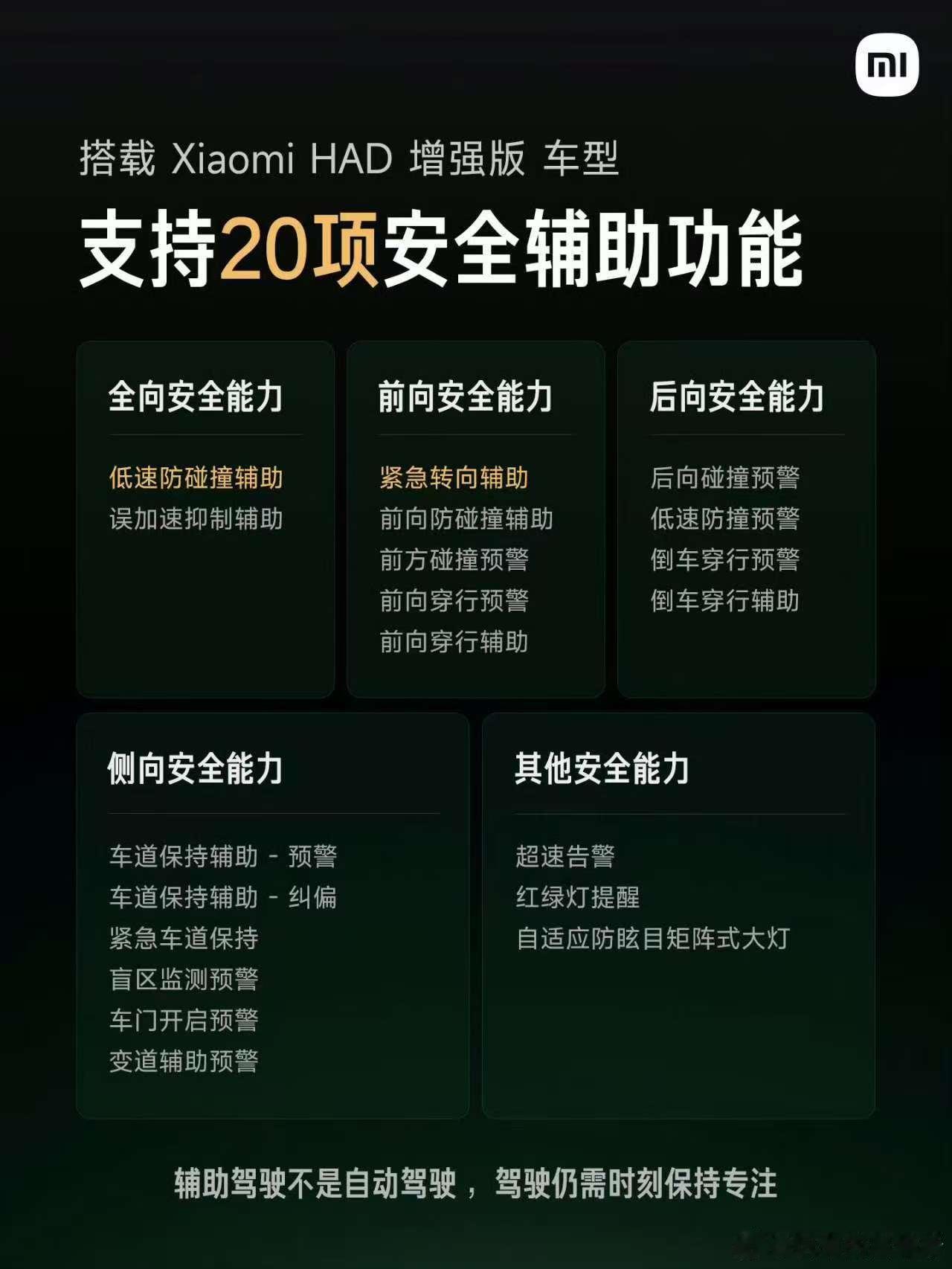 小米这波在辅助驾驶上又搞新动作了!刚发布的HAD增强版,直接把“强化学习”“世界模型”这些黑科技用上了,开起车来对路况的理解更透,横向纵向的体验都升级了。现在装了这系统的车,能直接用上20项安全辅助功能——低速防碰、误加速抑制、车道保持这些全给安排上,等于给开车加了层“安全buff”。而且这功能会跟着HyperOS 1.11版本推送给车主,不用额外折腾。虽说现在和第一梯队还有差距,但小米这投入是真狠:AI领域一年砸70亿,智驾团队都1800多人了,光博士就108个。这架势是要把辅助驾驶往实用了做啊