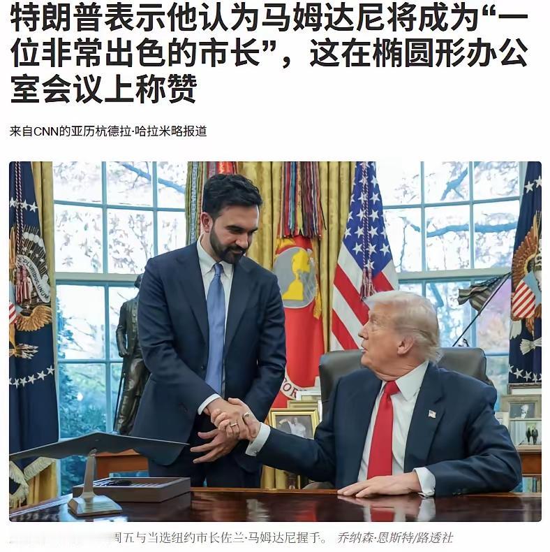 大骗子跟小骗子在一起了,两个人开始对骂,现在又和好了,这么和谐融洽。 马姆达尼不是很横吗?不是要和特朗普贴脸开大吗?怎么他站在特朗普面前这么恭敬,一个坐着,一个站着。 美国州长跟总统是平级的。马姆达尼还这么巴结特朗普,真是谄媚。