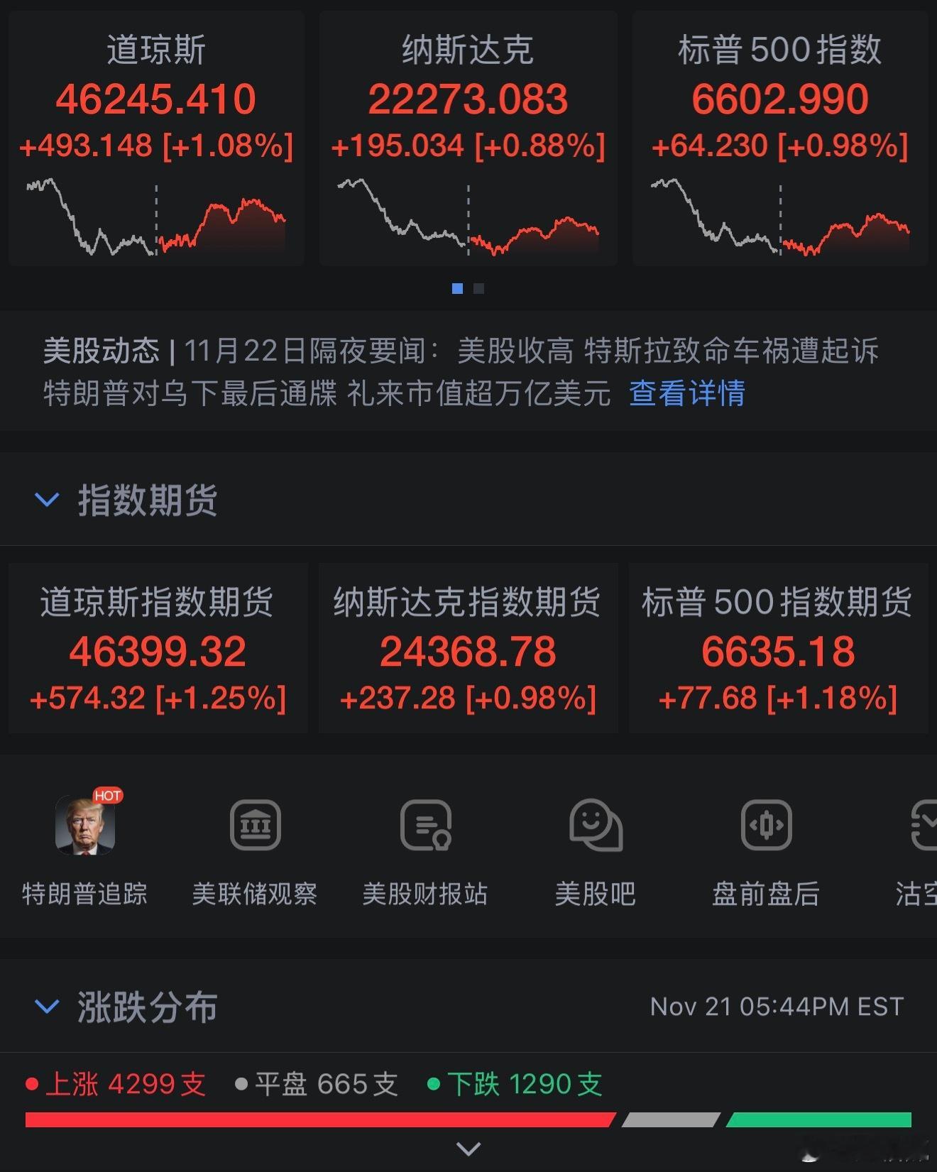 道指涨493.15点,涨幅为1.08%,报46245.41点;纳指涨195.03点,涨幅为0.88%,报22273.08点;标普500指数涨64.23点,涨幅为0.98%,报6602.99点。随着投资者从几只估值极高的股票中获利了结,本周美股行情动荡,三大股指均录得跌幅:道指累计下跌1.91%,标普500指数下跌1.95%。纳指下跌2.74%,为连续第三周录得跌幅。