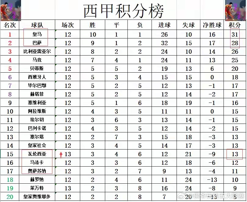 倒挂金钩定生死!瓦伦西亚1-0掀翻莱万特,保级区杀疯了! 梅斯塔利亚球场见证绝境求生!瓦伦西亚从VAR吹掉进球的遗憾中翻盘,第78分钟科雷亚边路妙传,杜罗背身扛住双防守+凌空倒挂金钩破门,这记神仙球直接价值3分,把莱万特摁在降级区动弹不得!全场两队狂造杀机,横梁挡出、门将神扑轮番上演,保级战的惨烈与热血被拉满,这才是西甲底层厮杀的真实模样!争冠区这边暗流涌动,皇马3分优势领跑巴萨,本轮巴萨主场硬刚毕尔巴鄂(巴斯克铁汉从不软柿子),皇马客场战埃尔切看似轻松却暗藏爆冷风险——首回合国家德比皇马赢球,即便积分追平巴萨仍占先机,巴萨想翻盘只能死磕三分!射手榜更是断层碾压:姆巴佩12轮轰13球,场均超1球的效率甩莱万、阿尔瓦雷斯6球之多,皇马这笔引援直接解锁“进球机器”模式,维尼修斯5球助攻4次沦为“辅助”! 巴萨能顶住毕尔巴鄂冲击缩小分差吗?莱万特还能逃出降级区吗?来评论区聊聊你的预测!