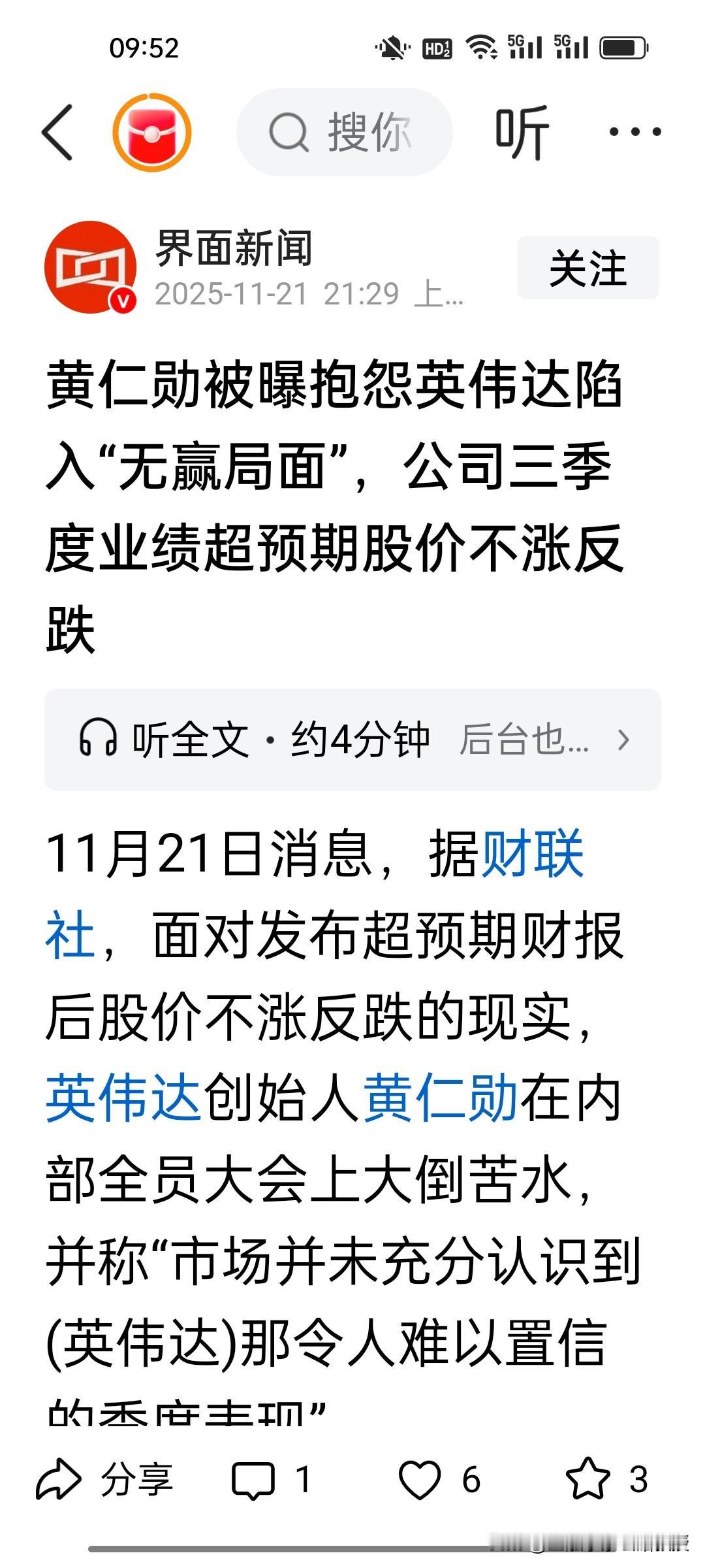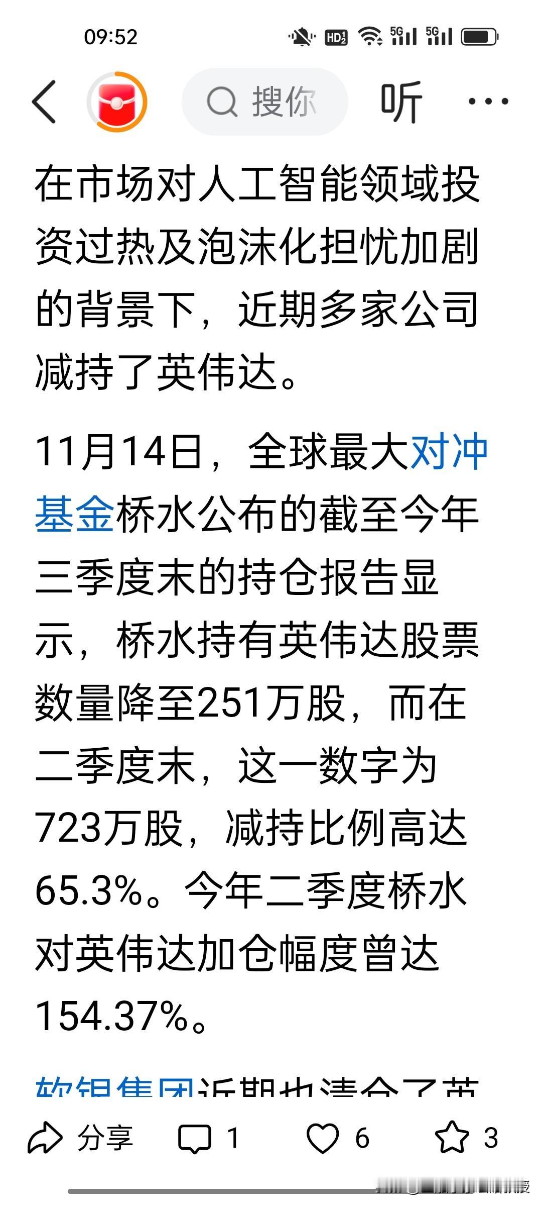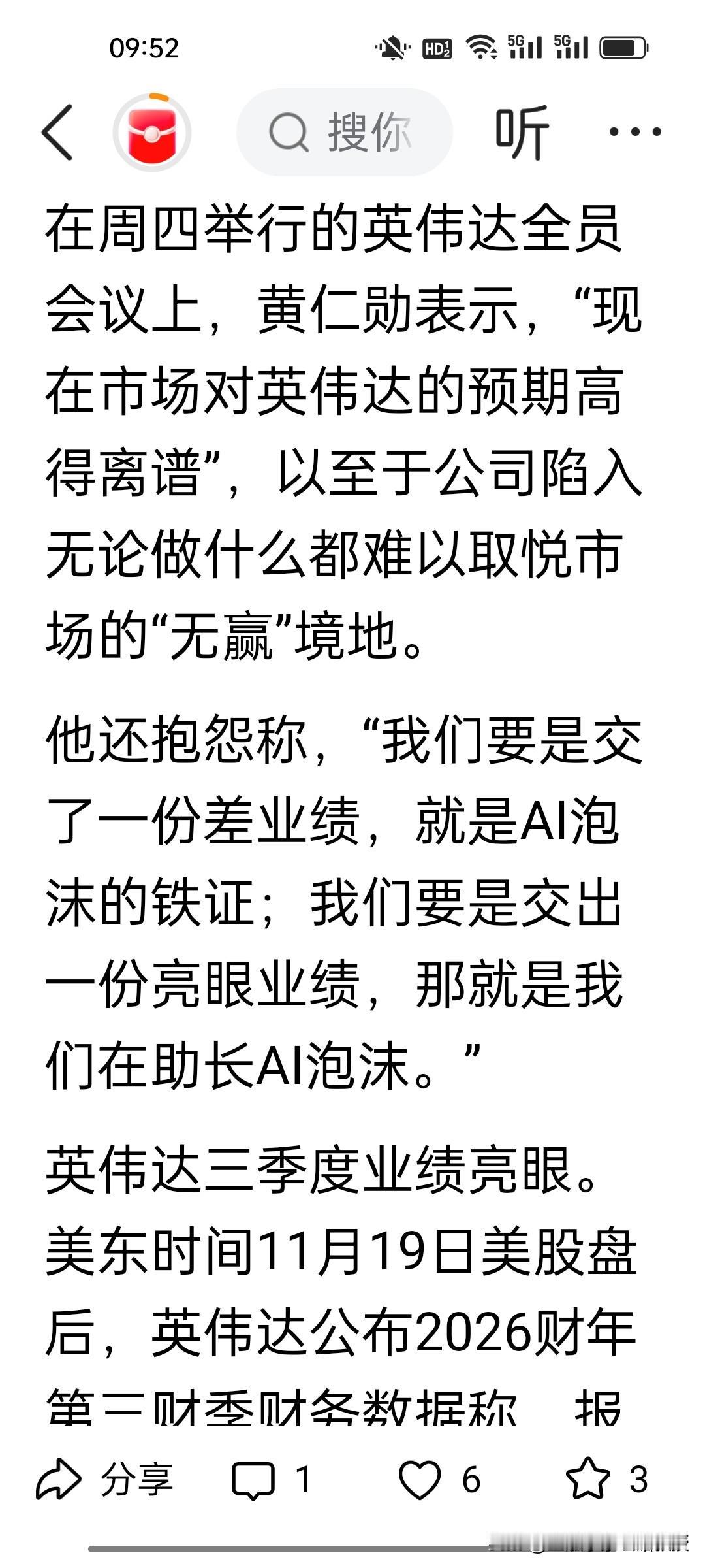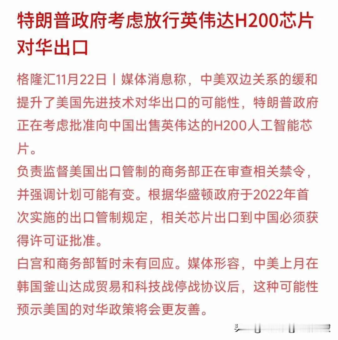 英伟达跌了12%,让美股陷入AI泡沫即将破灭的局面,黄仁勋也开始抱怨自己公司陷入“无赢局面”,他怎么也想不通业绩这么好还反而大跌,自嘲一周内损失了5000亿美元。 但是,特朗普在美股大跌的关键时候犹如神来之笔,在中美关系缓和的当下,美国政府正在考虑批准向中国出售英伟达H200人工智能芯片。 尽管软银集团和桥水基金已经减仓英伟达,但是特朗普政府给了英伟达未来市场的预期,这个“神来之笔”应该能治好黄仁勋短期的焦虑。
