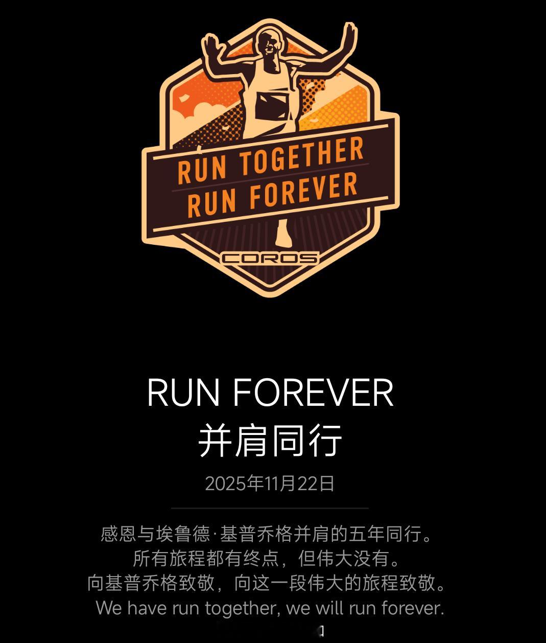 今天又去跑柴古线上,果然高驰的数据记录和手表显示有差异,以后还是要尽量多留余量,今天这结果也太悬了。COROS 还蹦了个勋章出来,纪念和 Eliud Kipchoge 基普乔格合作的结束。